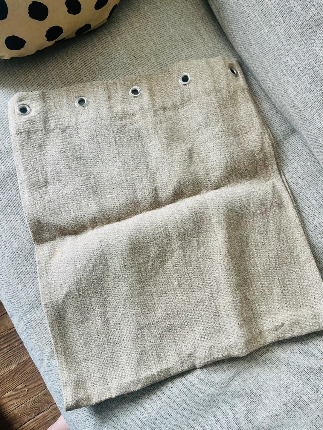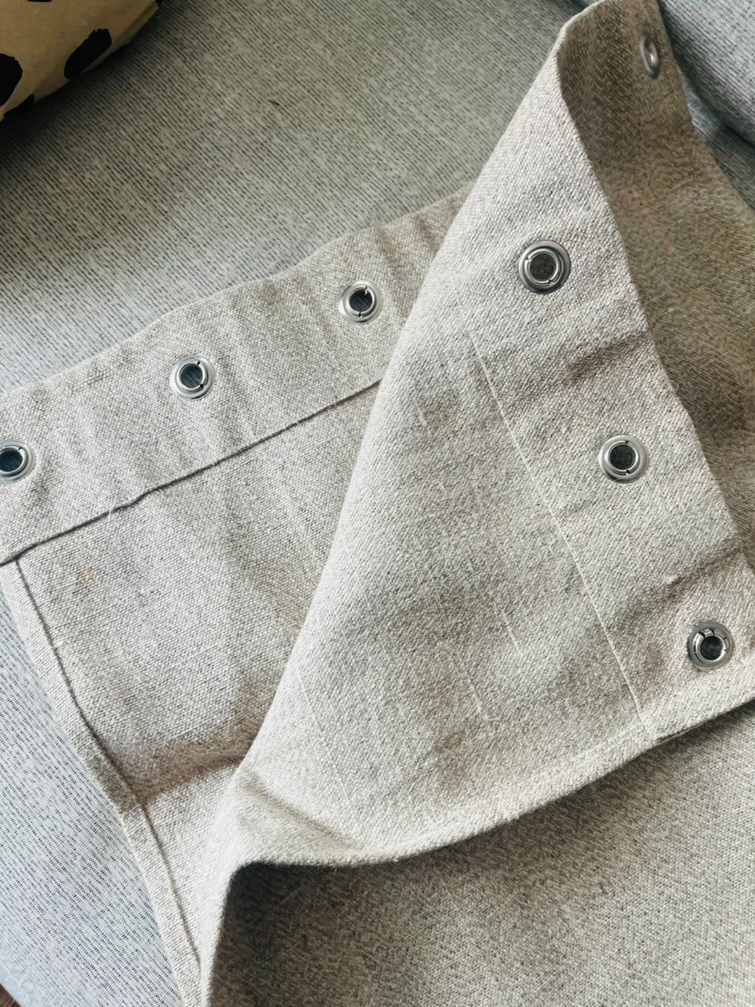 This is a hemp neutral-coloured fabric hammock for pets. It's made of a textured hemp linen-like material and features metal grommets along the each end for hanging. Never used - it’s still folded from packaging but easy to iron or hang to get the fold lines out.