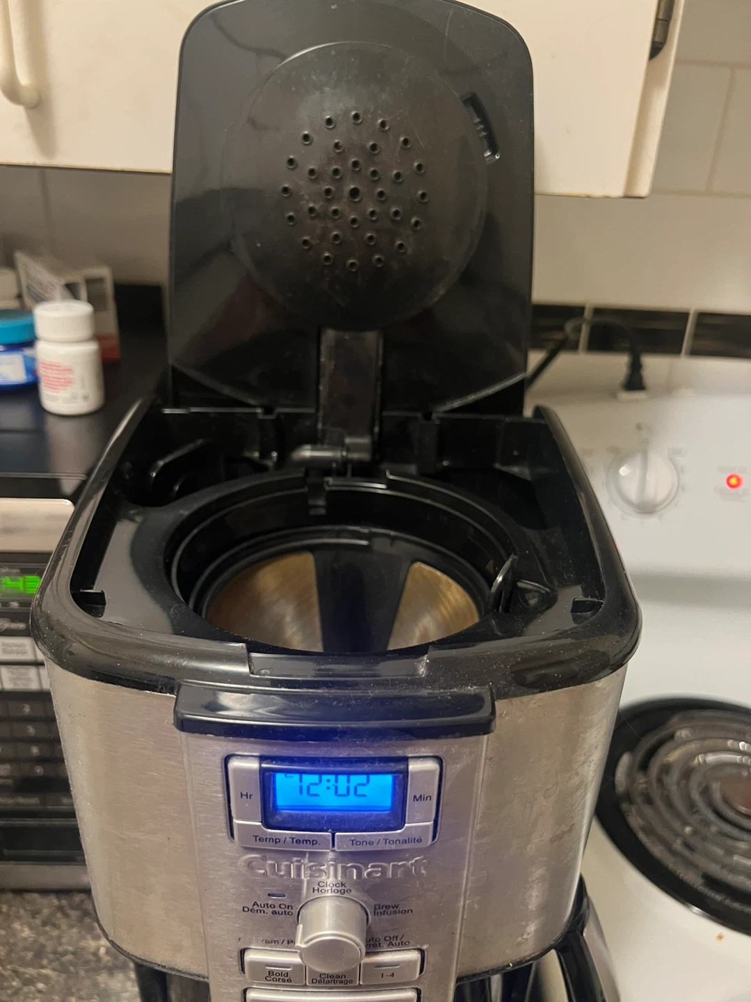 Selling a Cuisinart coffee maker. It's programmable with an auto-on feature, and you can adjust the brew strength to your liking with the bold option. It also has a self-clean function, making maintenance a breeze