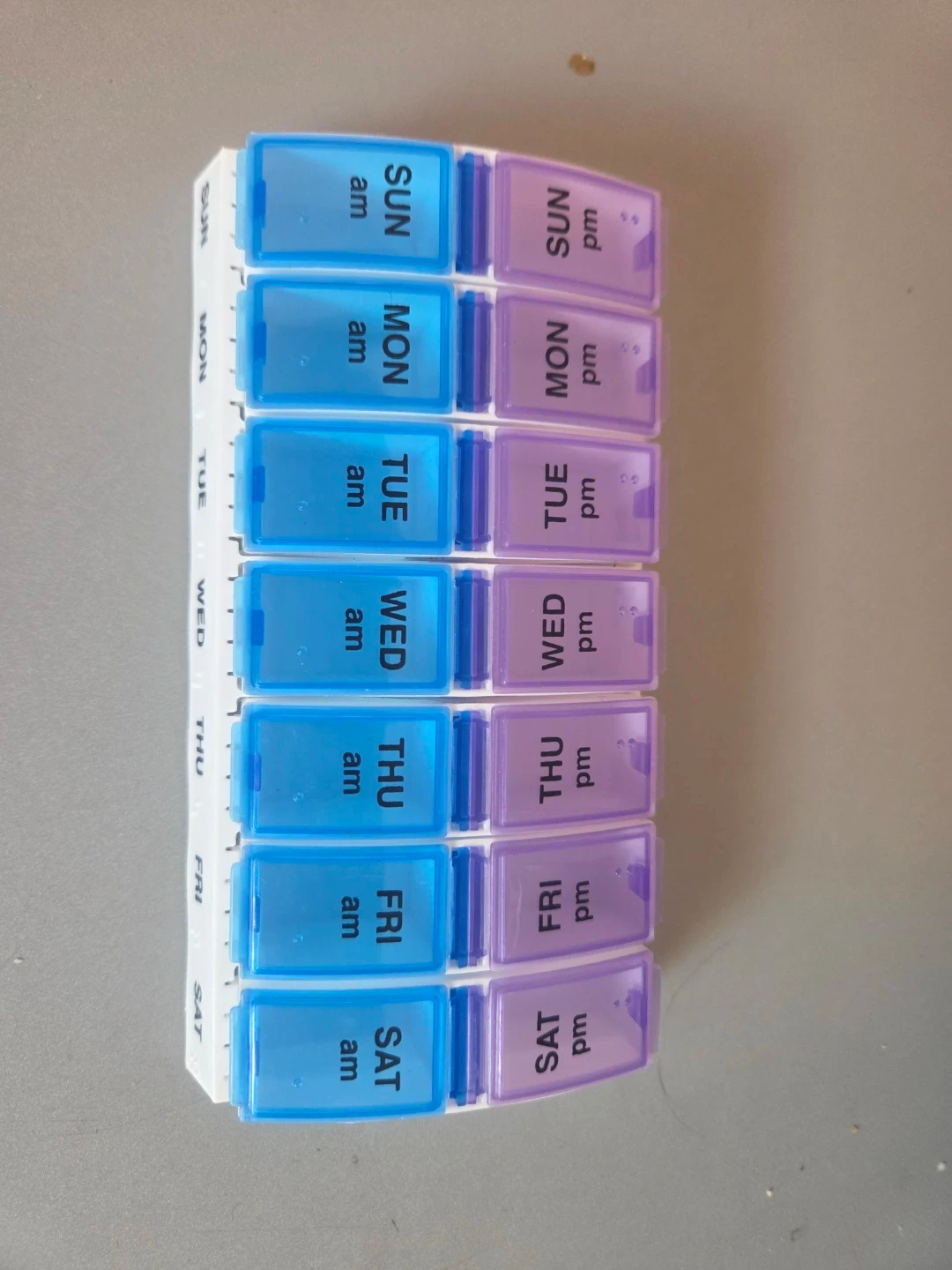 Here's a pill organizer with compartments for each day of the week, and AM/PM sections for each day! It's in great shape and ready to help you keep your medications organized