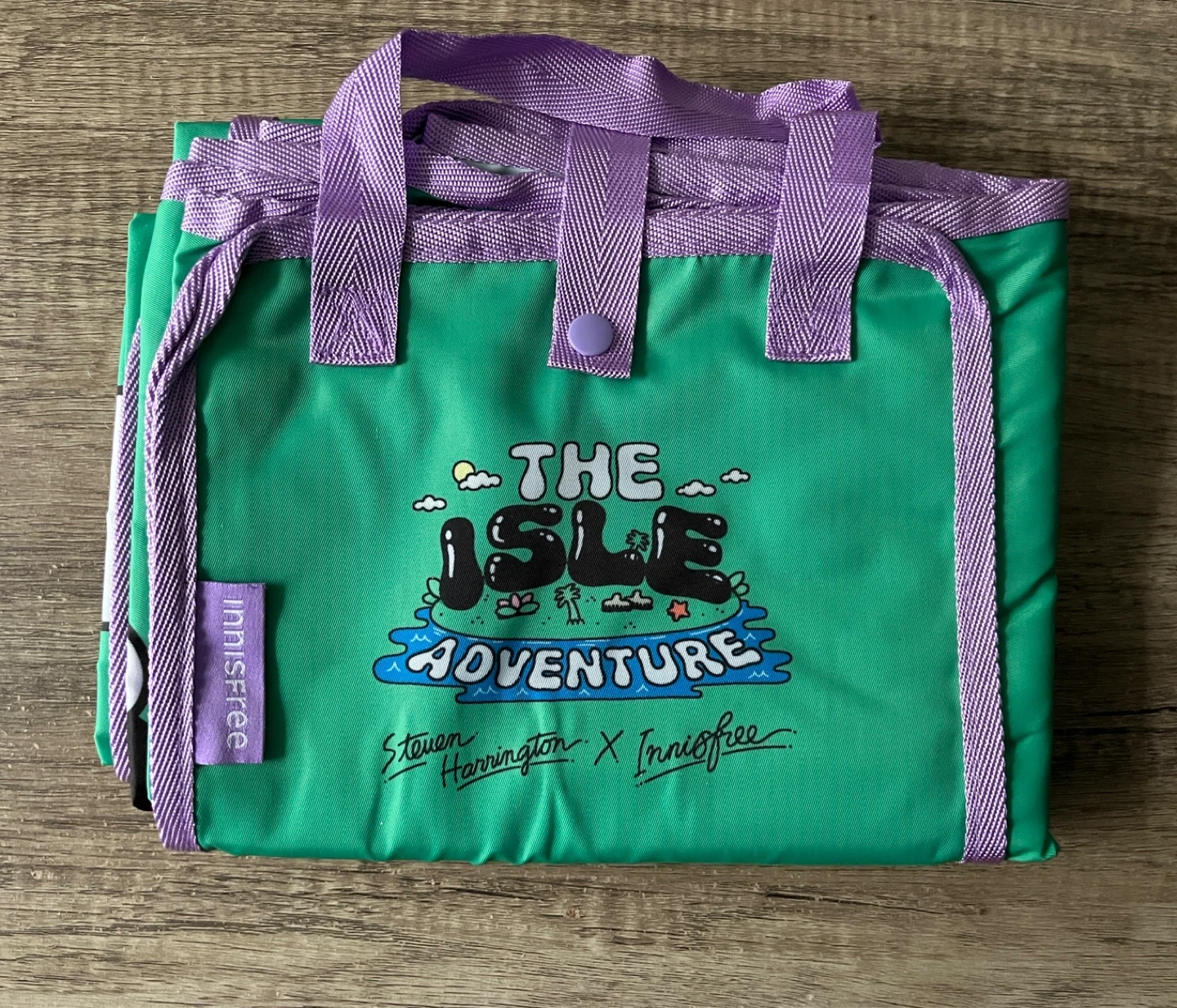 New and never used promotional "The Isle Adventure" picnic mat, in collaboration with Steven Harrington and Innisfree.