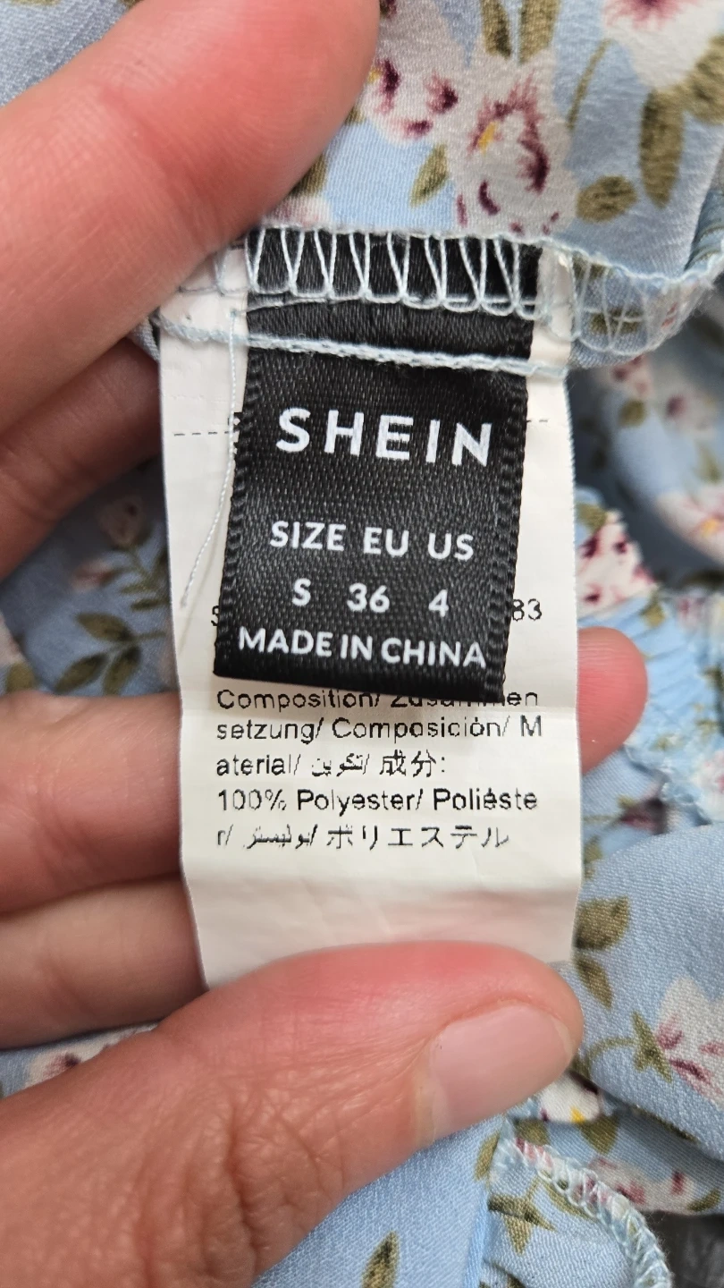 This blue floral print dress features puff sleeves and a sweetheart neckline. Made from 100% polyester. Size S, US 4. Perfect for a casual outing!