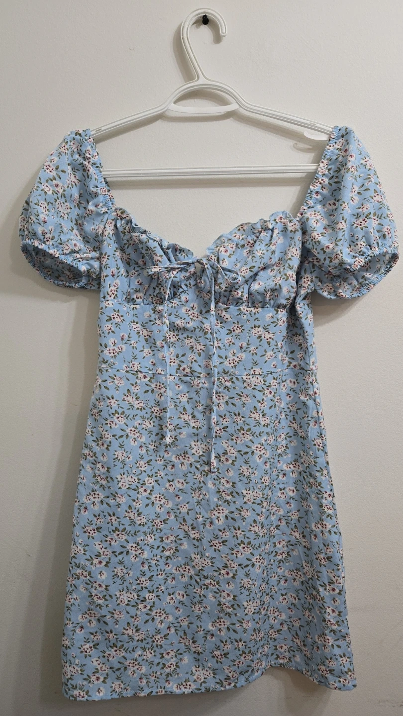 SHEIN Blue Floral Puff Sleeve Sweetheart Neck Dress Size S