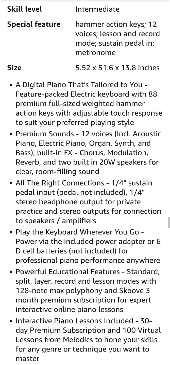 * 88 premium full-sized weighted hammer action keys πΉ