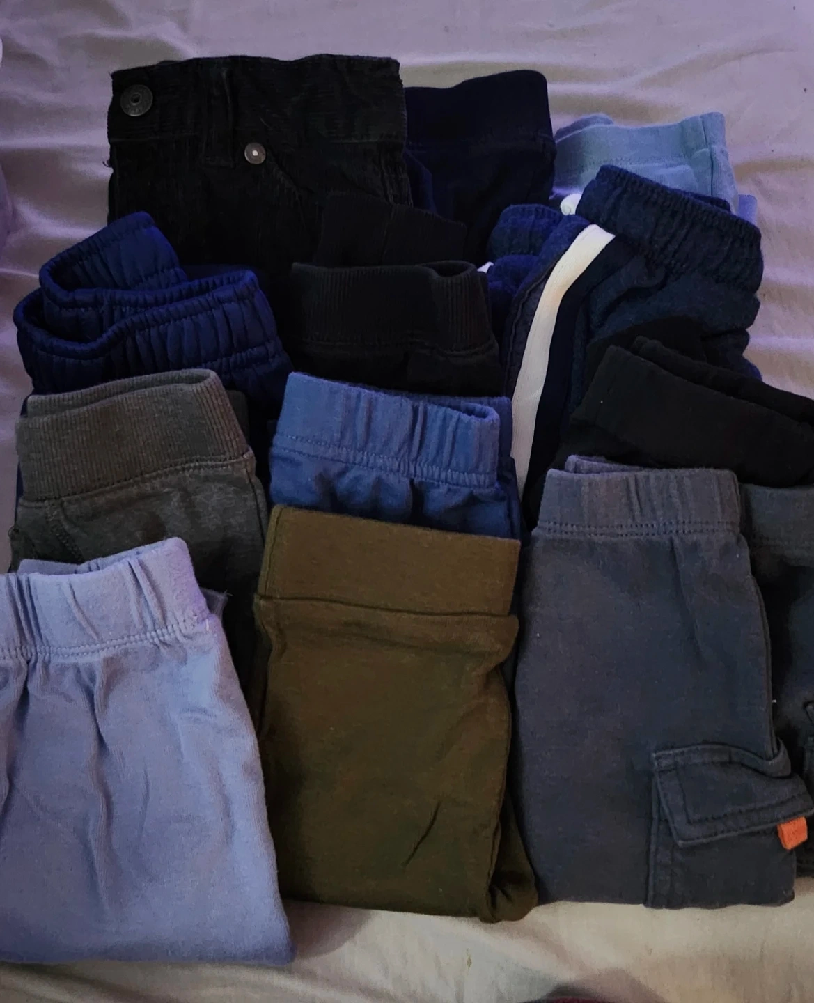 Selling a bundle of boys' pants in various colours and styles. Perfect for everyday wear! They're in good condition and ready for a new home.