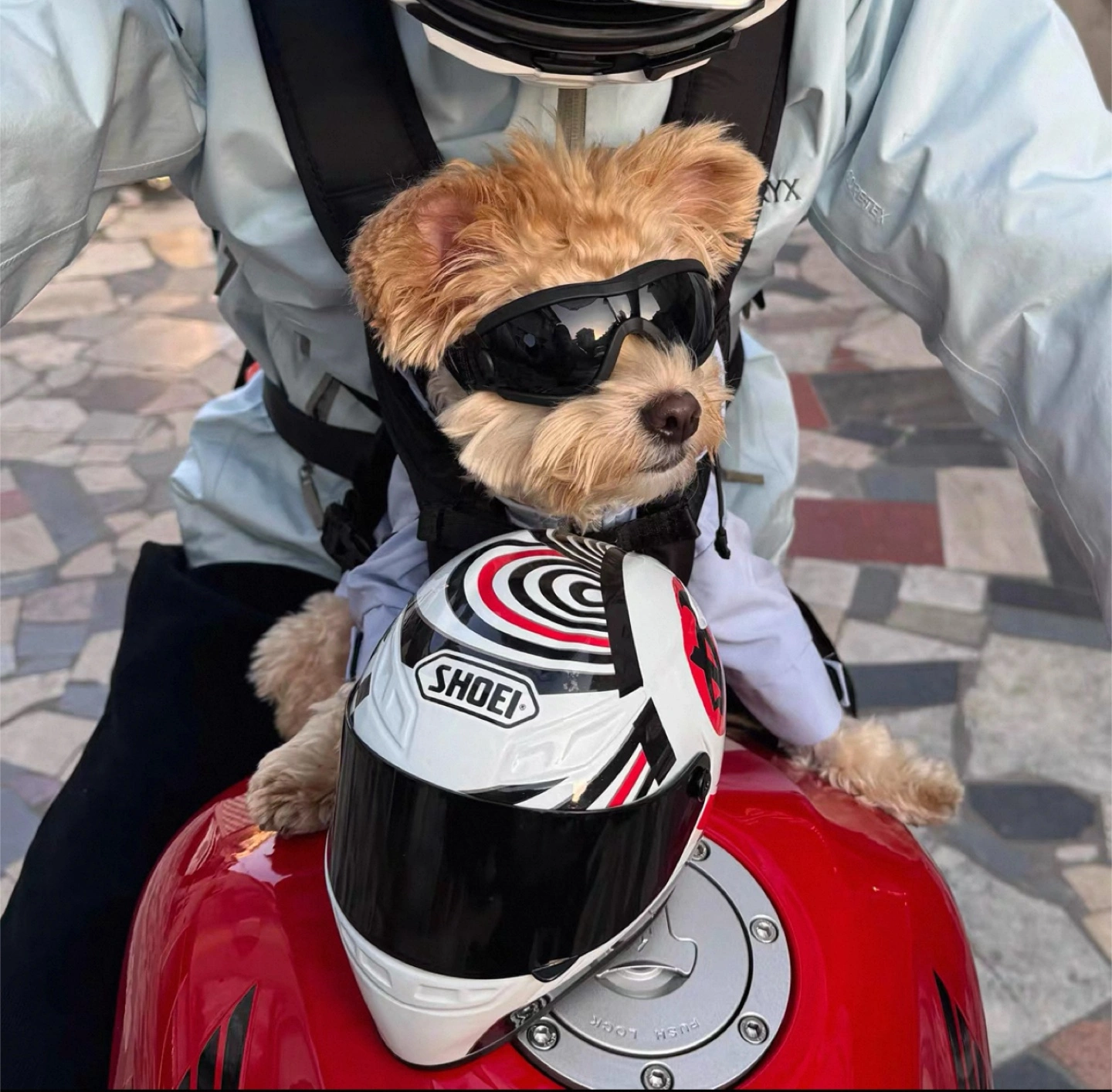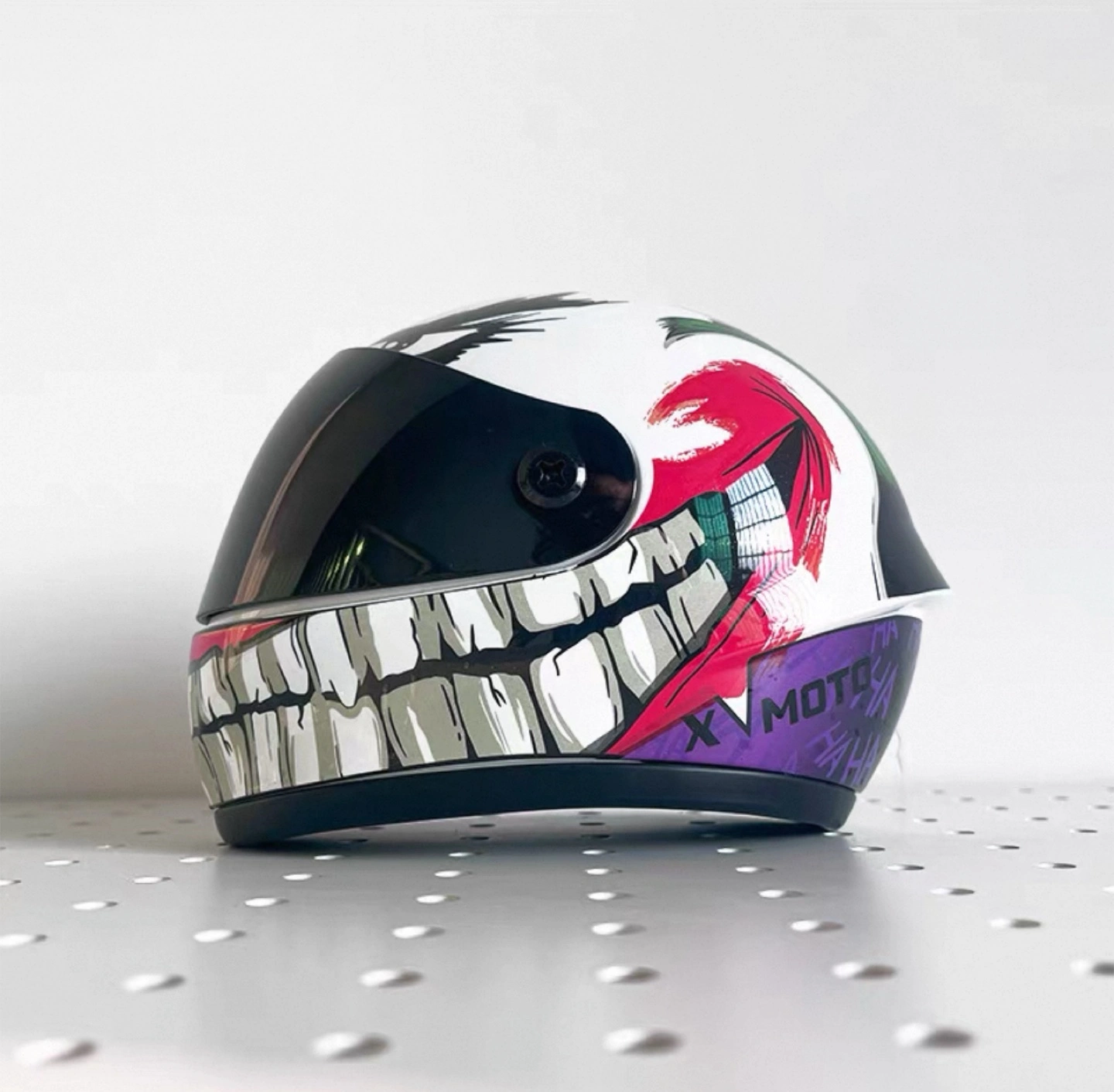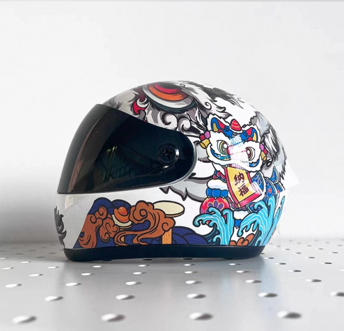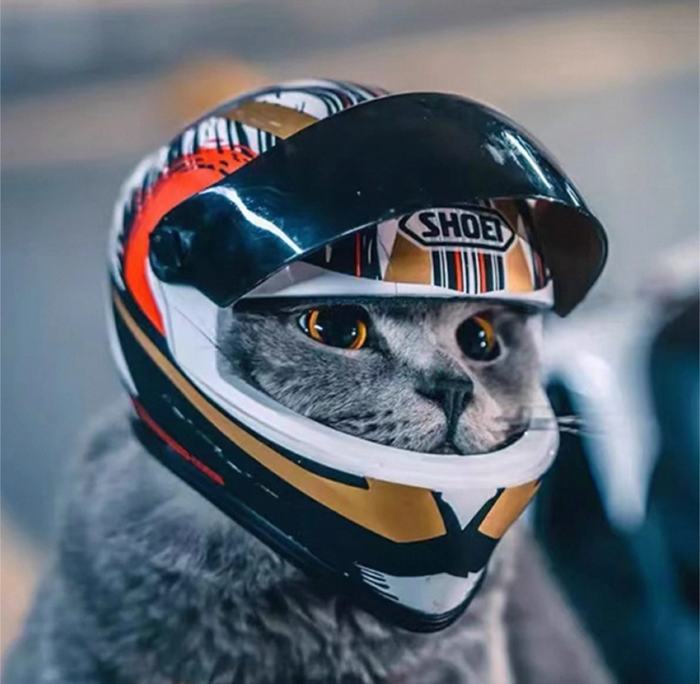 These are novelty motorcycle helmets, likely for pets or small children. They have fun designs. Perfect for a photoshoot!