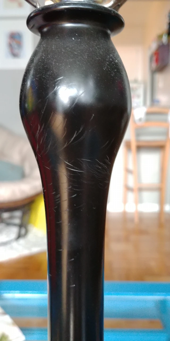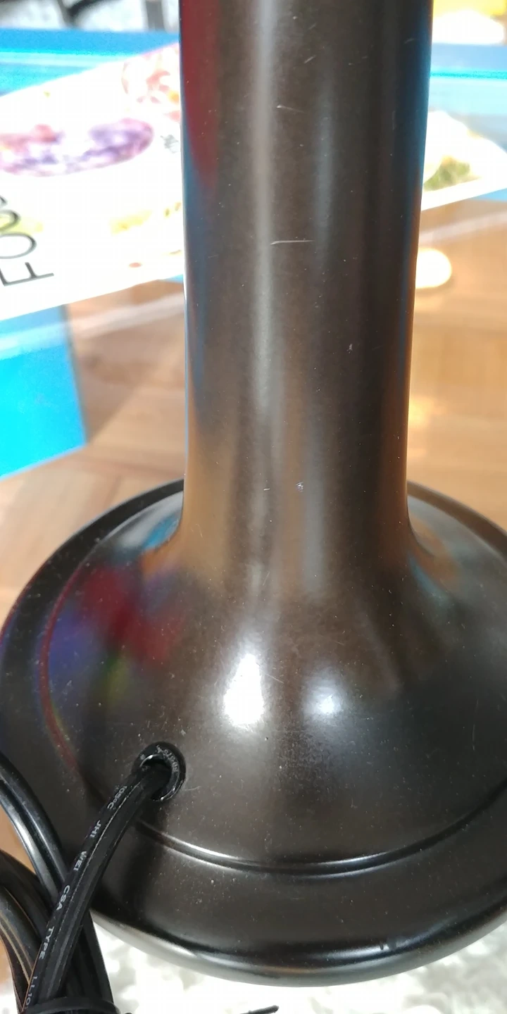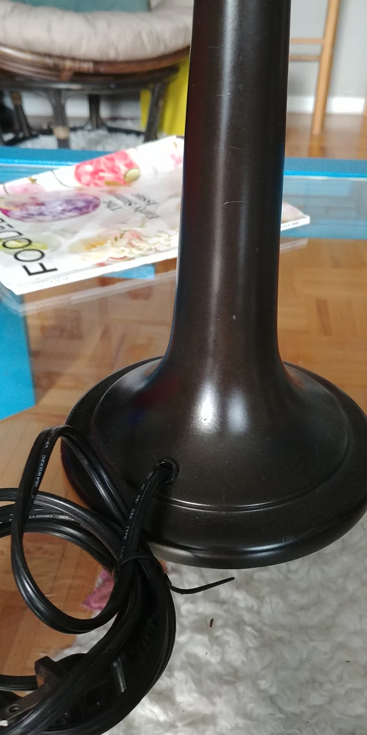 slightly scuffed at top as per photos can't really notice it when in use, shade will hide. Heavy gauge quality lamps.