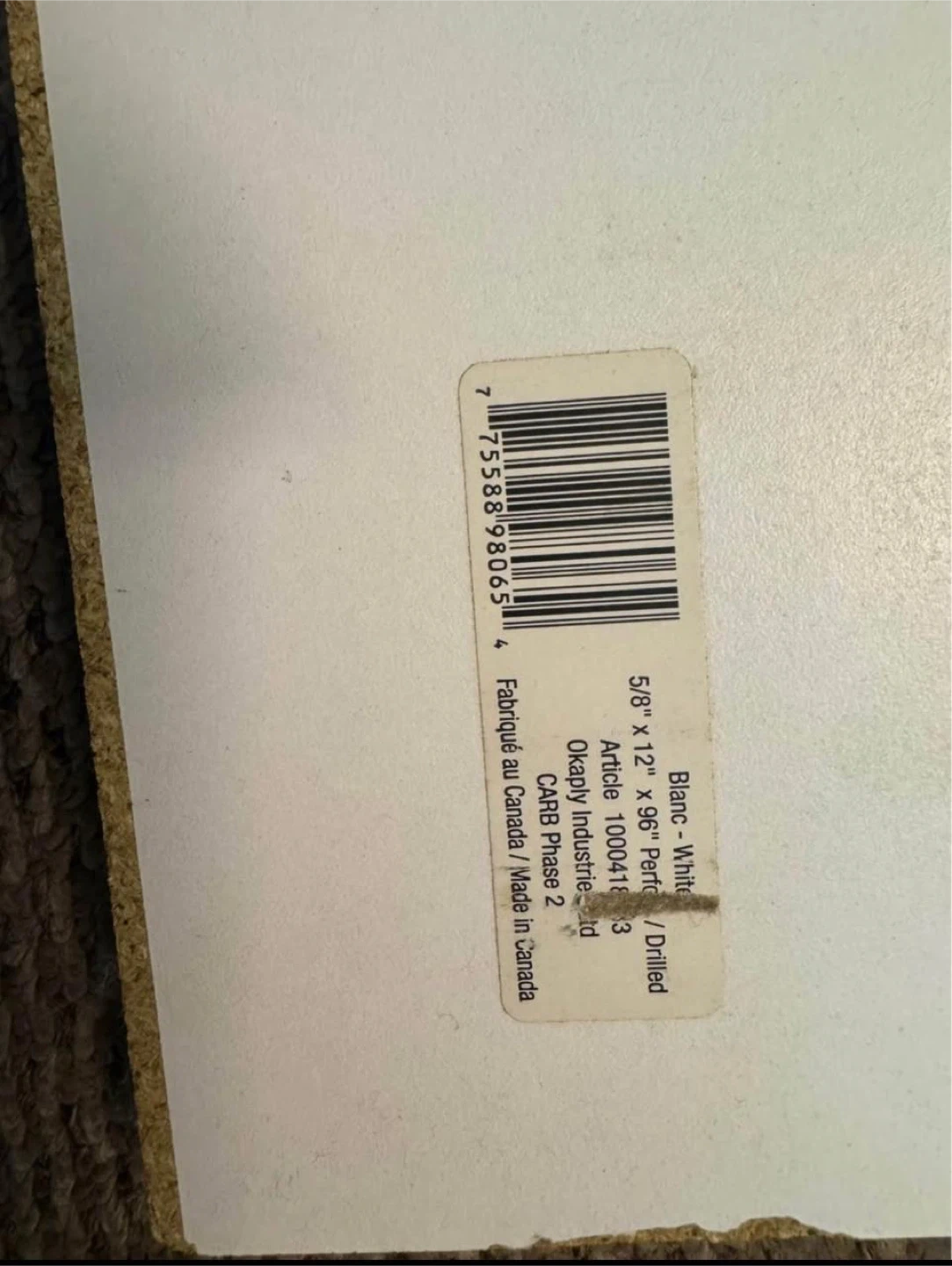 This is a white shelving board measuring 5/8" x 12" x 96". Includes multiple white shelf brackets. Great for organizing your space!