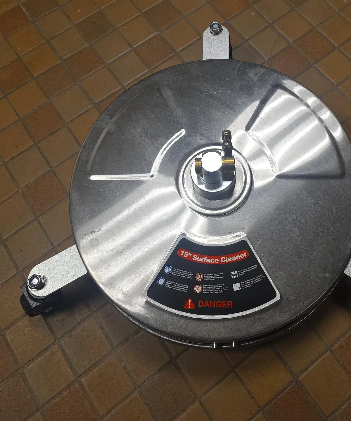 This 15" surface cleaner attachment is made of durable stainless steel. It's designed for efficient cleaning of flat surfaces. Great for use with pressure washers!
