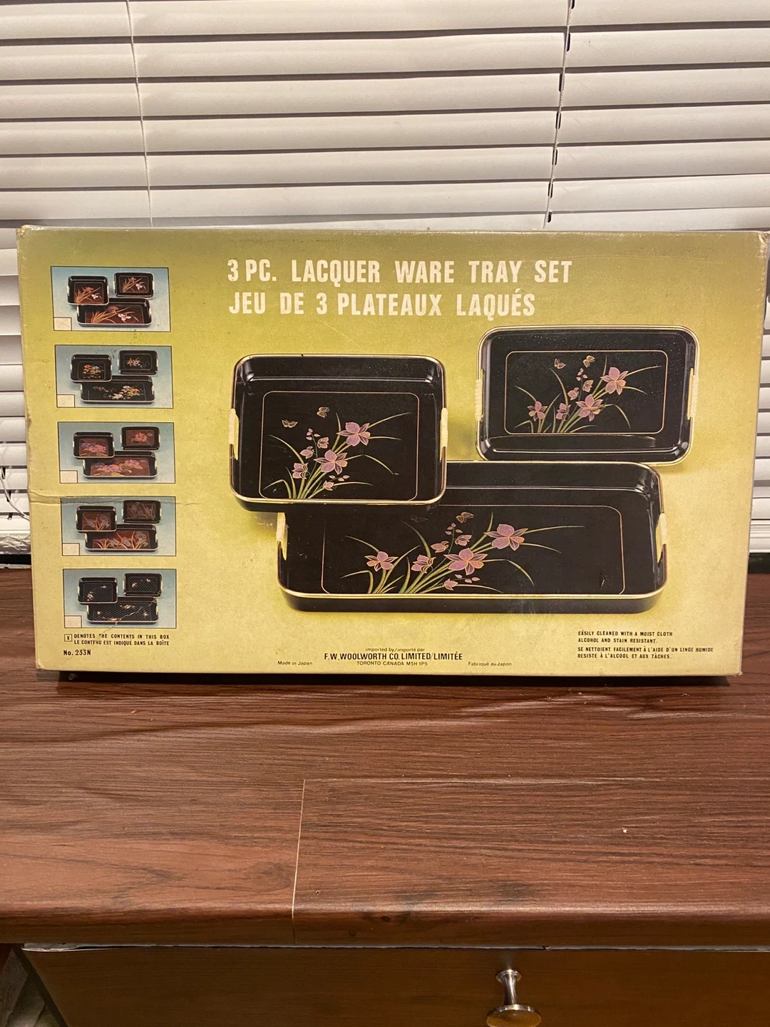3 Pcs Vintage Japan Black Lacquerware Tray Set