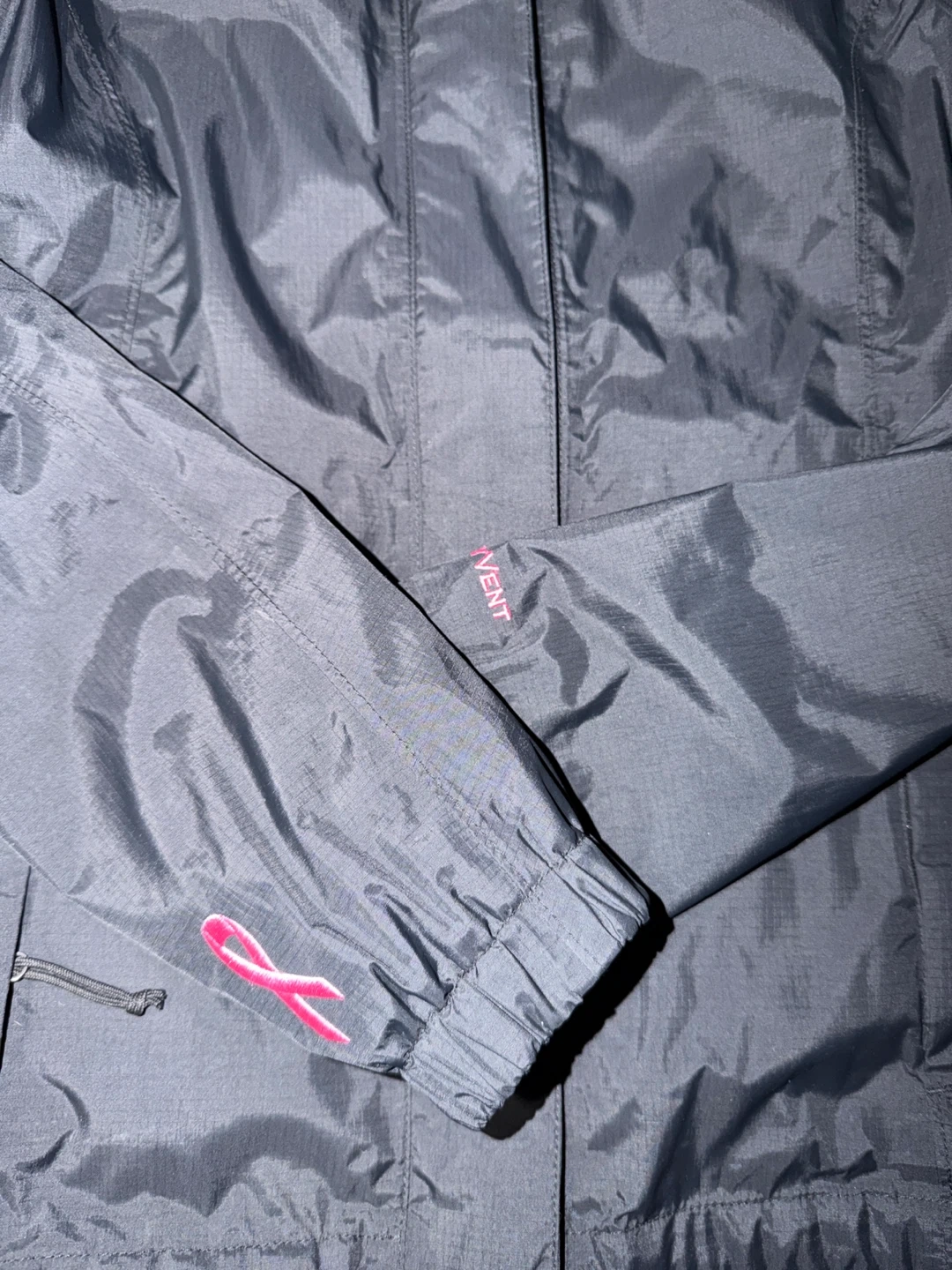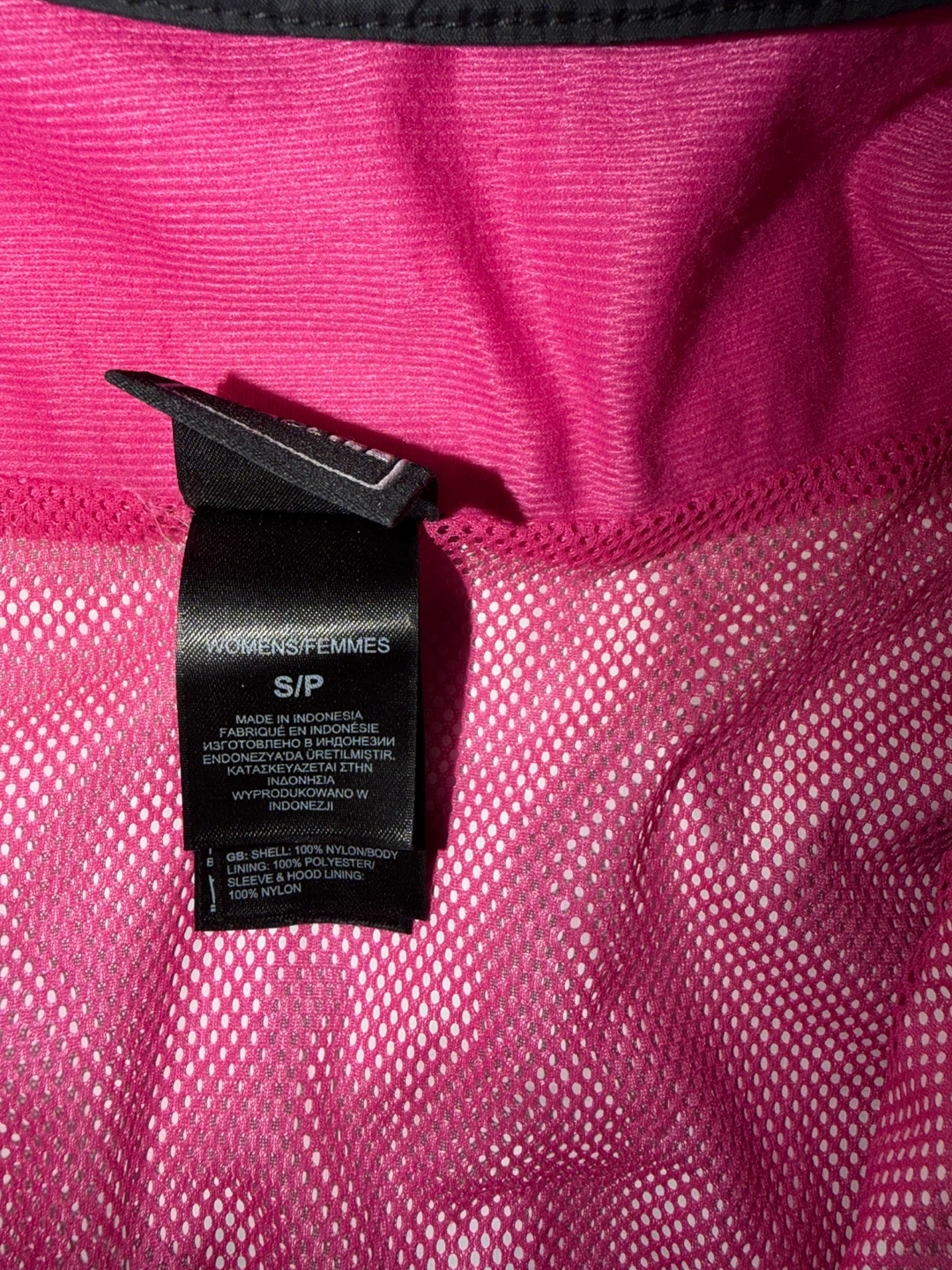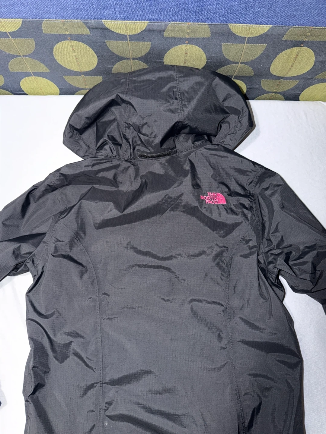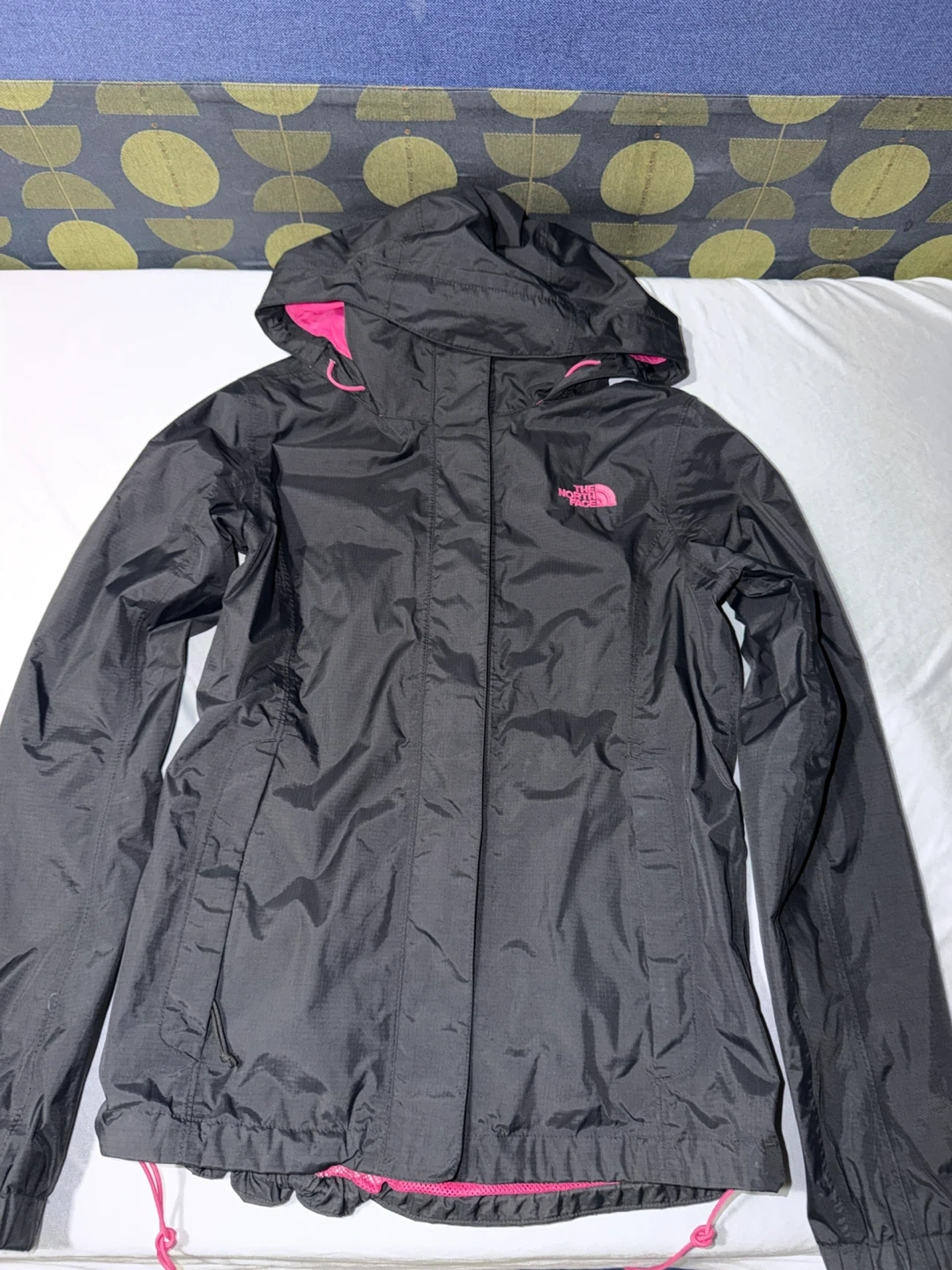 This is a women's The North Face shell jacket in black. It's a size S/P. The shell is 100% nylon and the body lining is 100% polyester. This jacket is great for outdoor activities!