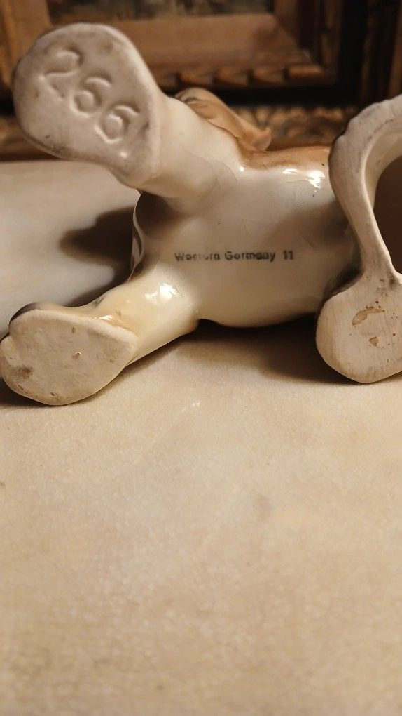 Vintage Erphila porcelain Boxer puppy figurine. Germany 2661. Lovingly cared for by one owner, 1950s. High gloss glaze in light brown, tan, black & white details. Perfect condition.