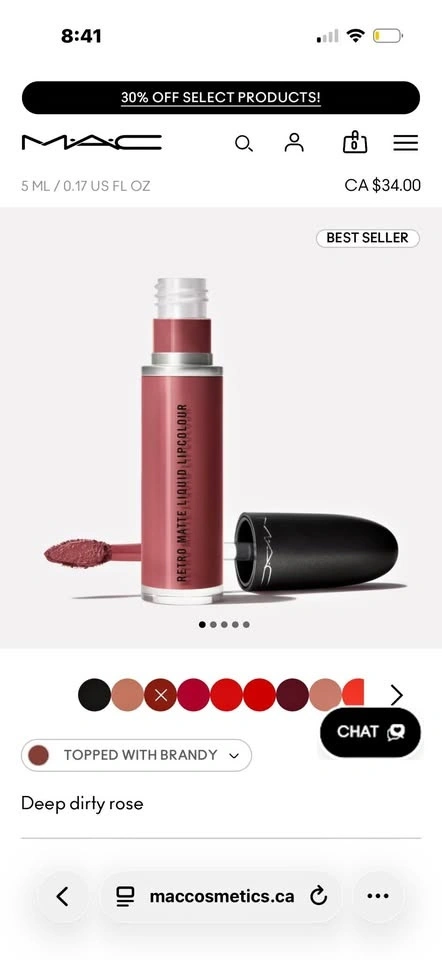 Buy & SellBNIB MAC Liquid Lipstick in “Topped With Brandy”BNIB MAC Liquid Lipstick in “Topped With Brandy”$15Brand new, described as a deep dirty rose shade. Flattering on all skin tones.WHERE TO MEETCheck LocationView MapSELLERLauraEtobicoke W Mall211 review0 chats·0 favorites·7 viewsSEND CHAT TO SELLERHi Laura! I’m interested in your listing.Hi Laura! I’m interested in your listing.Get the Karrot app to chatSign In to chat