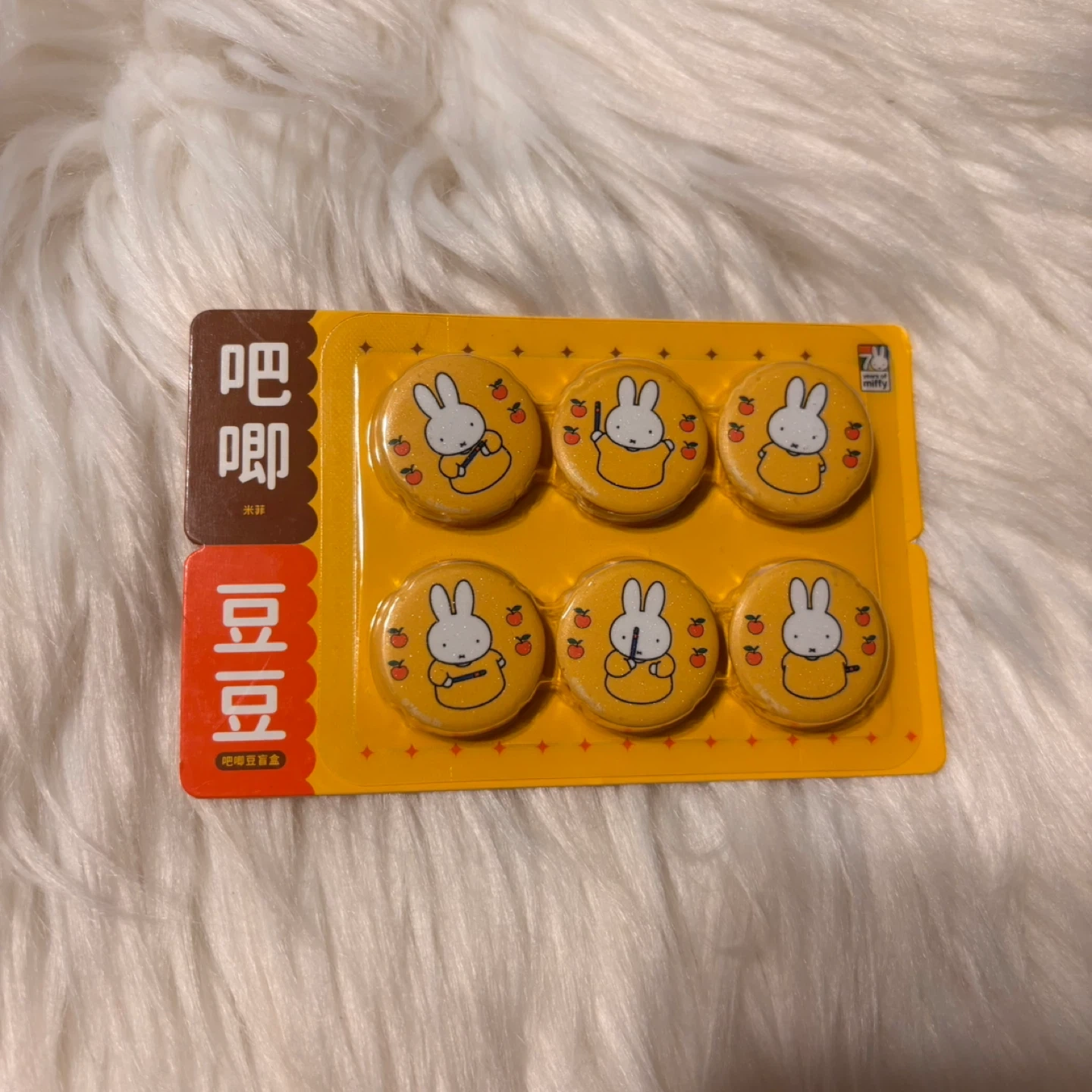 Selling a set of six adorable Miffy buttons! These cute buttons feature Miffy with an apple design on a bright yellow background. Perfect for adding a touch of charm to your crafts or accessories