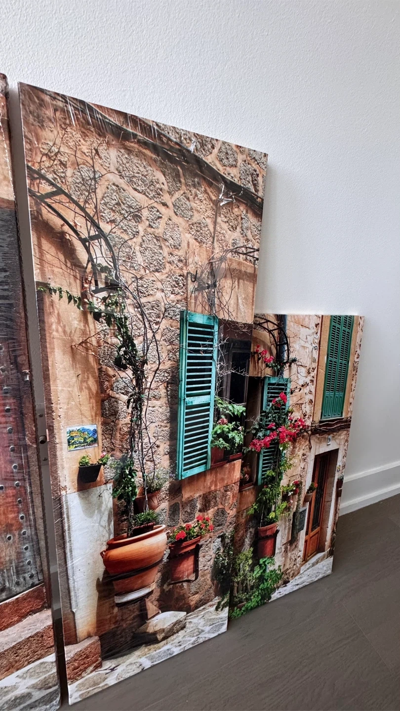NEW Canvas Wall Art Set - Mediterranean Courtyard Scene