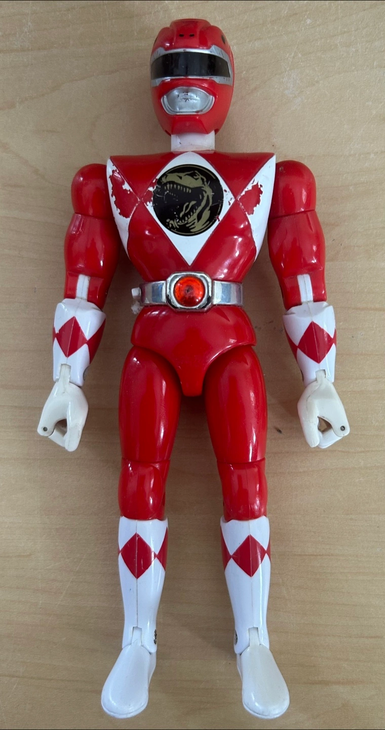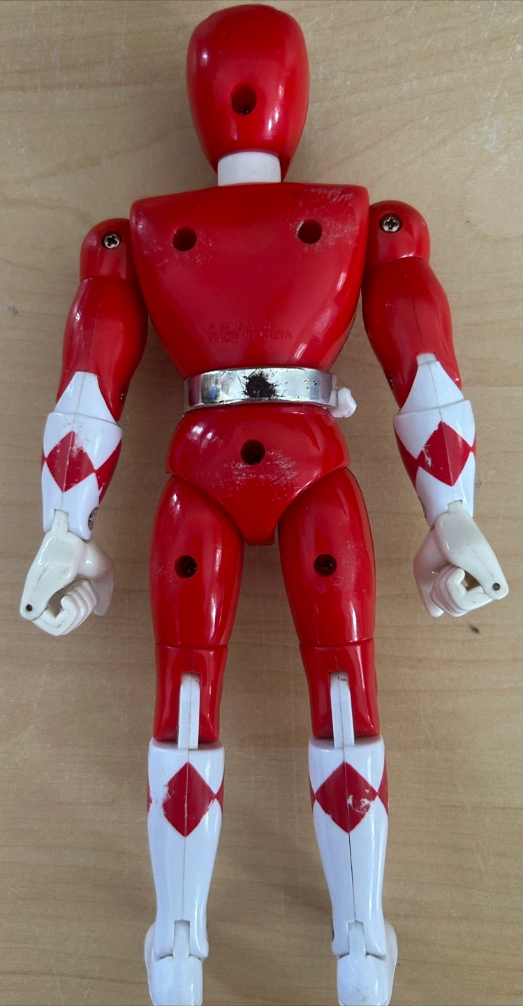 Vintage Power Rangers action figure. Features a red suit with white and diamond patterns. Includes a silver belt with a red centre piece. Would make a great addition to any collection.