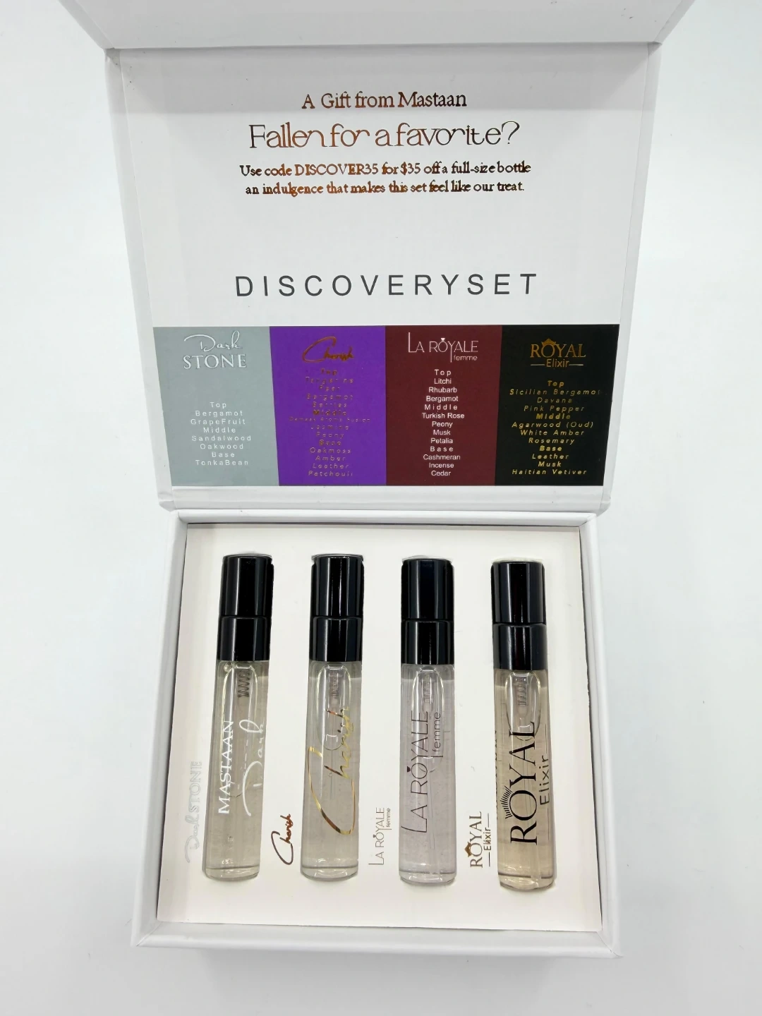 This is a 100mL bottle of Mastaan Dark Stone Eau de Parfum. It's a fragrance with notes of tea, bergamot, grapefruit, wood, and oakwood. A perfect scent for evenings out!
