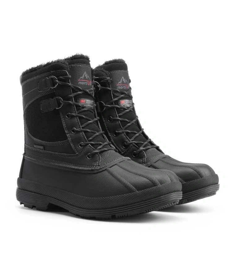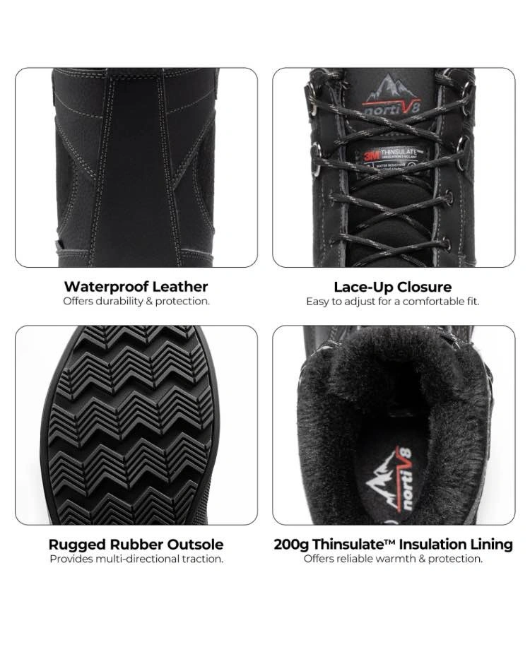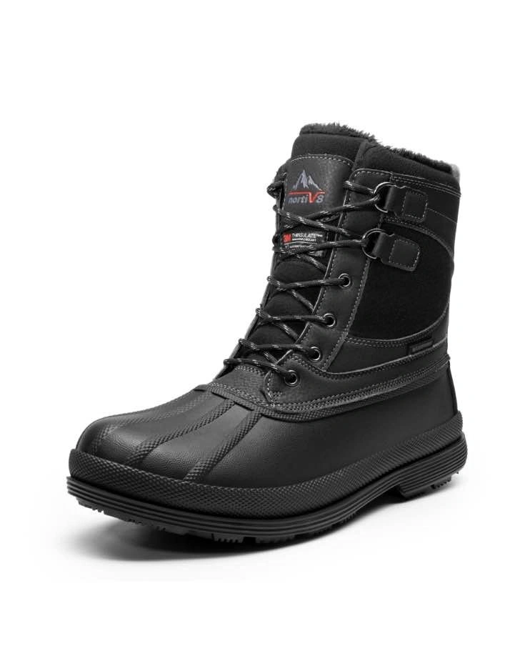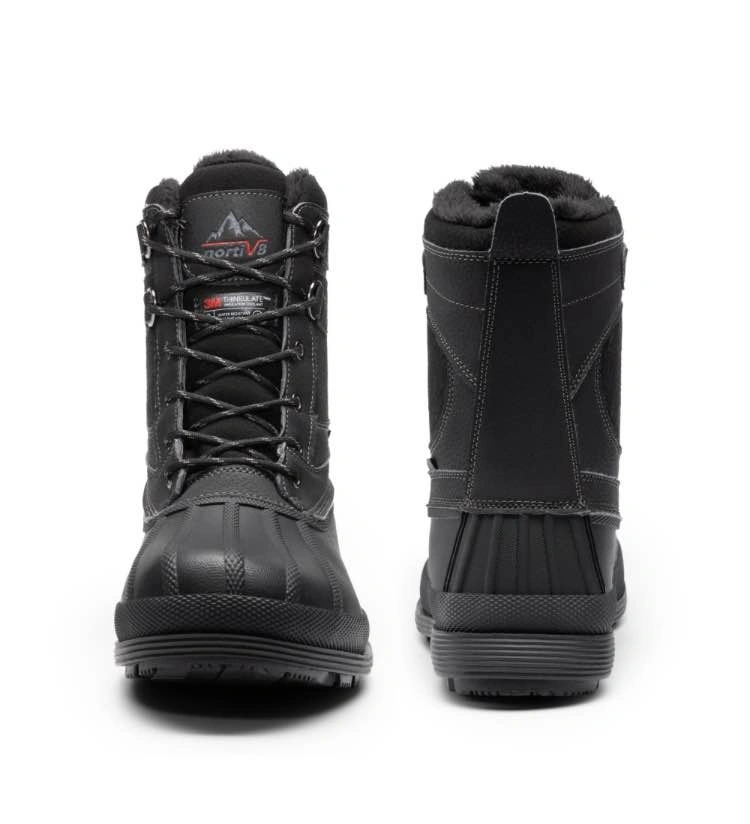 Warming system: 200g 3M Thinsulate keeps your feet warm and dry even when the temperature is -25F. 3M Thinsulate provides about 1 1/2 times the warmth of down and about twice the warmth of other high-loft insulation materials when equal thicknesses are compared. Men snow boots feature waterproof construction for waterproof & windproof and a synthetic toe cap for anti-collision. The rubber outsole is stable, slip & abrasion resistant and flexible for various outdoor terrain. Perfect for daily winter wear and outdoor sports like skiing, snowmobiling, and ice fishing.