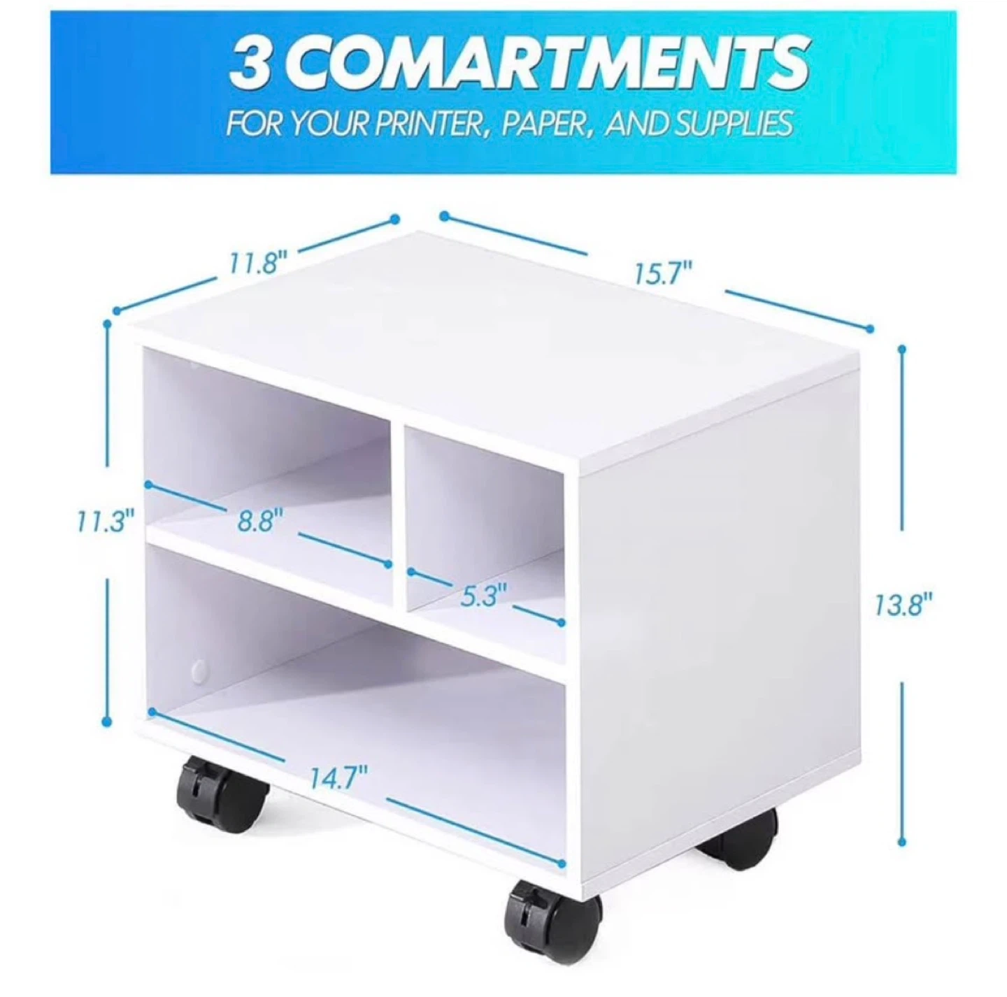 Selling a FITUEYES printer stand in white. It has three compartments for your printer, paper, and supplies.