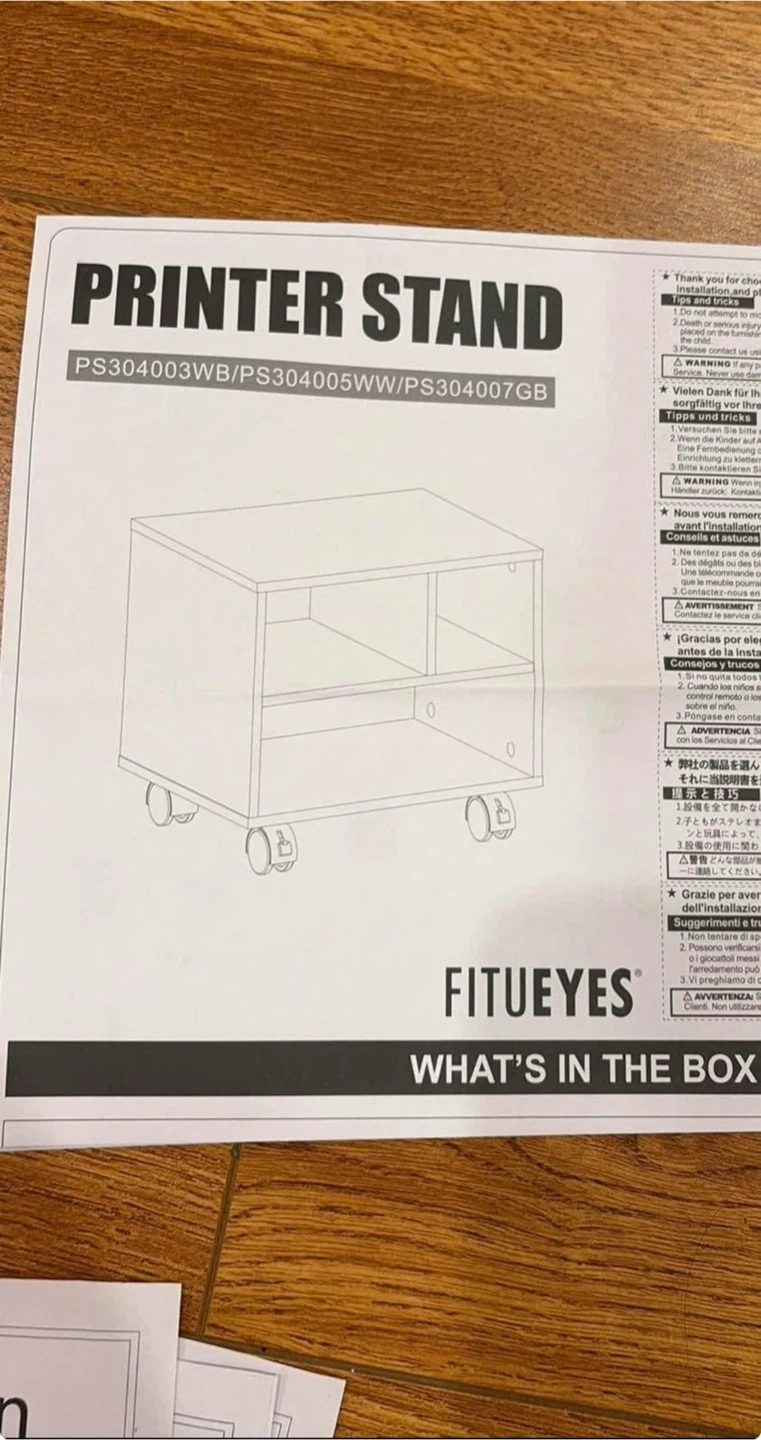 Selling a FITUEYES printer stand in white. It has three compartments for your printer, paper, and supplies.
