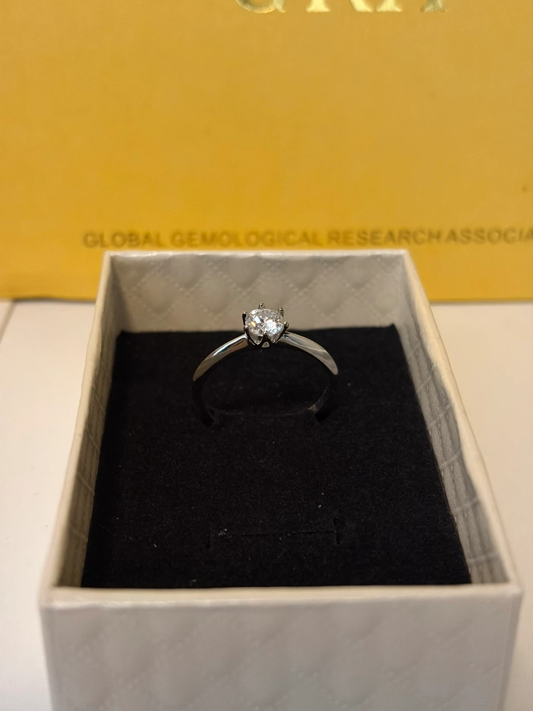 0.5 CT, Adjustable size and comes with GRA Certification and passes diamond tester