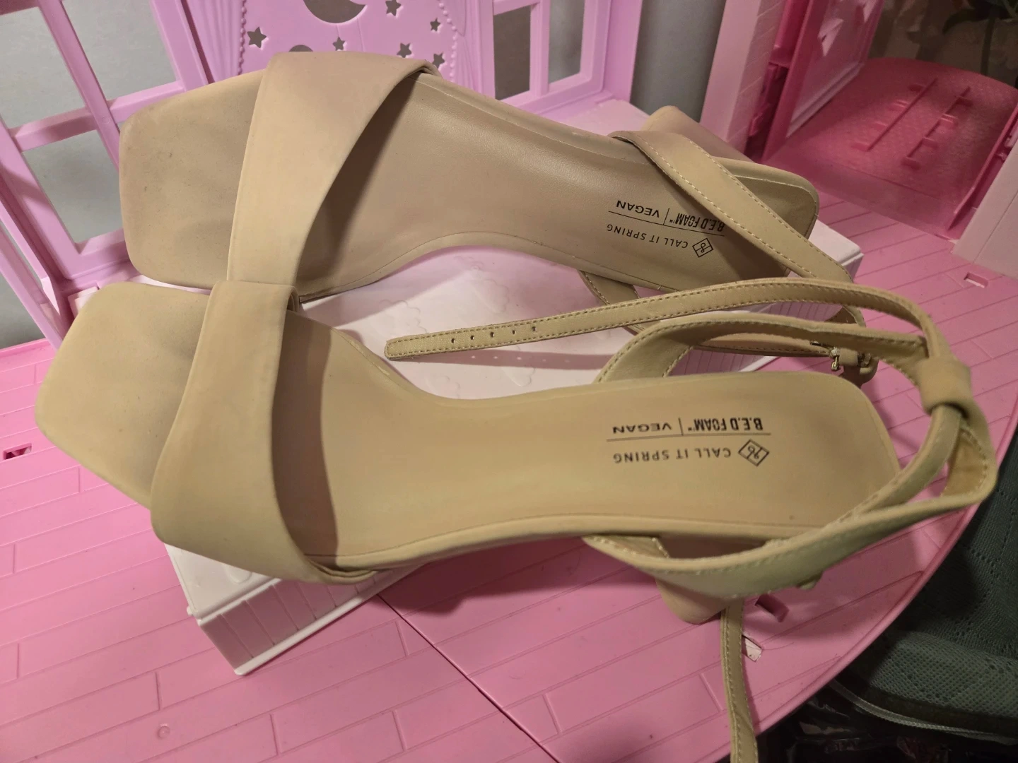 These beige heels from Call It Spring are in great condition and ready for a new home! They're a size 8 and feature a vegan B.E.D Foam insole for extra comfort. Perfect for dressing up any outfit!