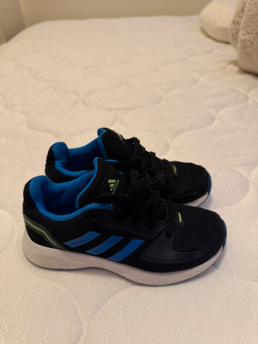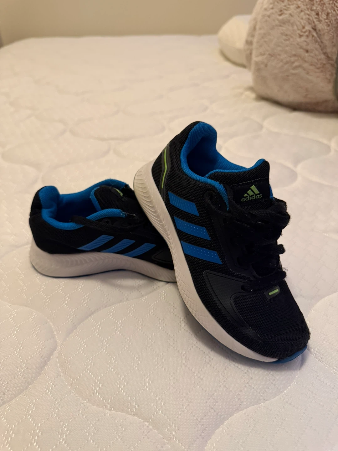 Buy & SellAdidas Kids Running Shoes Black Blue GreenAdidas Kids Running Shoes Black Blue Green$17Black and blue Adidas running shoes for kids. Features the iconic three stripes and Adidas logo. Lace-up closure. Suitable for active play!ConditionGoodAge6-8 yearsWHERE TO MEETCheck LocationView MapSELLERverifiedWilsonBushwick690 reviews0 chats·0 favorites·6 viewsSEND CHAT TO SELLERHi Wilson! I’m interested in your listing.Hi Wilson! I’m interested in your listing.Get the Karrot app to chatSign In to chat