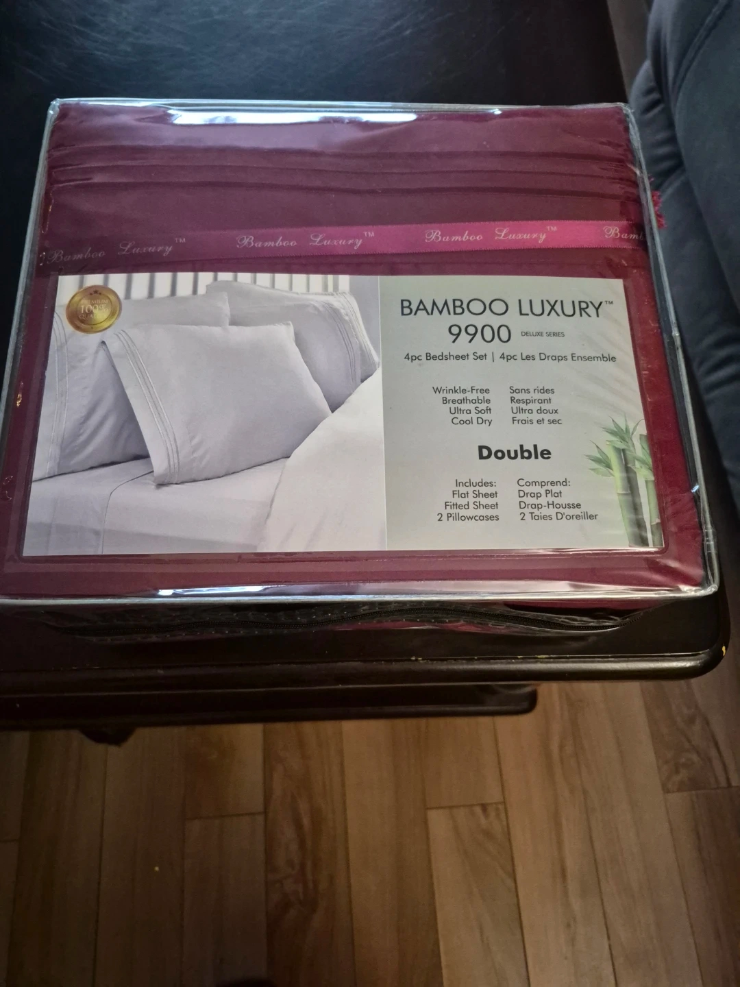 Get the sound night of sleep you've been dreaming of with Bamboo Luxury 9900 series bedsheet set for a Double bed. Perfect for hot or cold weather, this set adjusts to your body temperature so you can stay warm in the winter and cool in the summer. The fabric will leave you feeling like you spent the night in a luxurious hotel. Exceptionally durable while remaining lightweight. Includes flat sheet, fitted sheet, and 2 pillowcases.