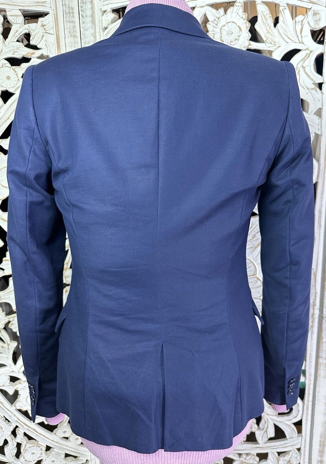 ZARA BASIC Women's Navy Blue Blazer Jacket, Size S (One-Button, Long with Three-Button Sleeves, US 2)