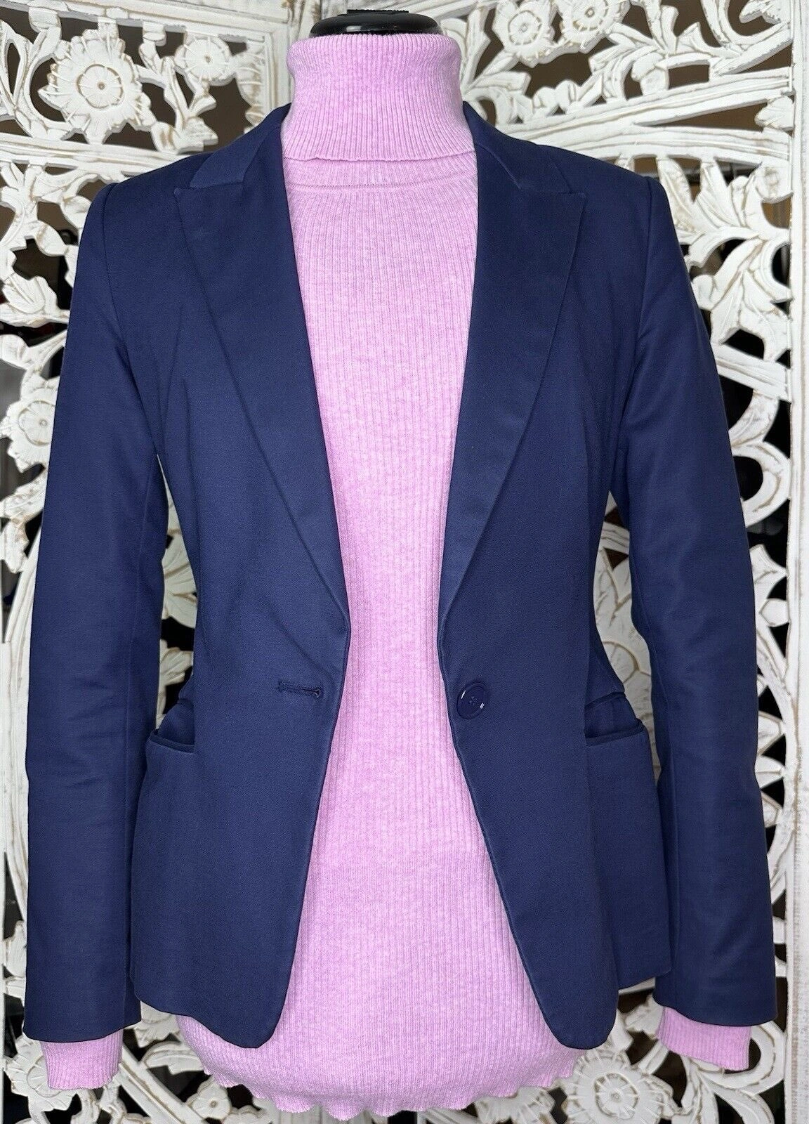 🥕 ZARA BASIC Womens Navy Blazer Jacket S One button 3 buttons