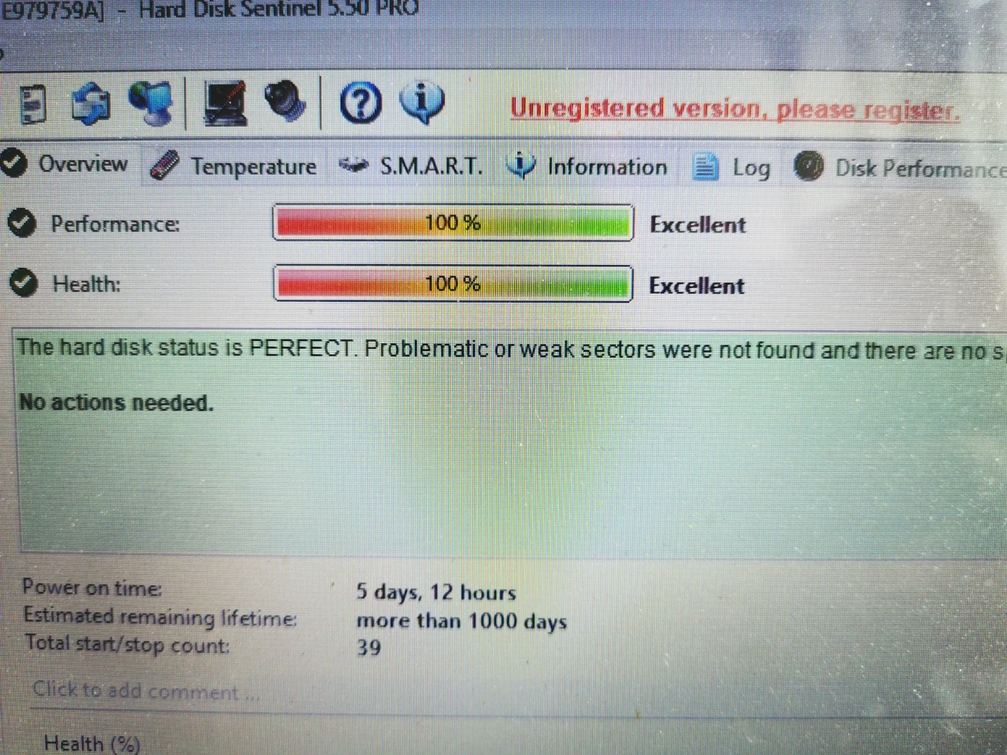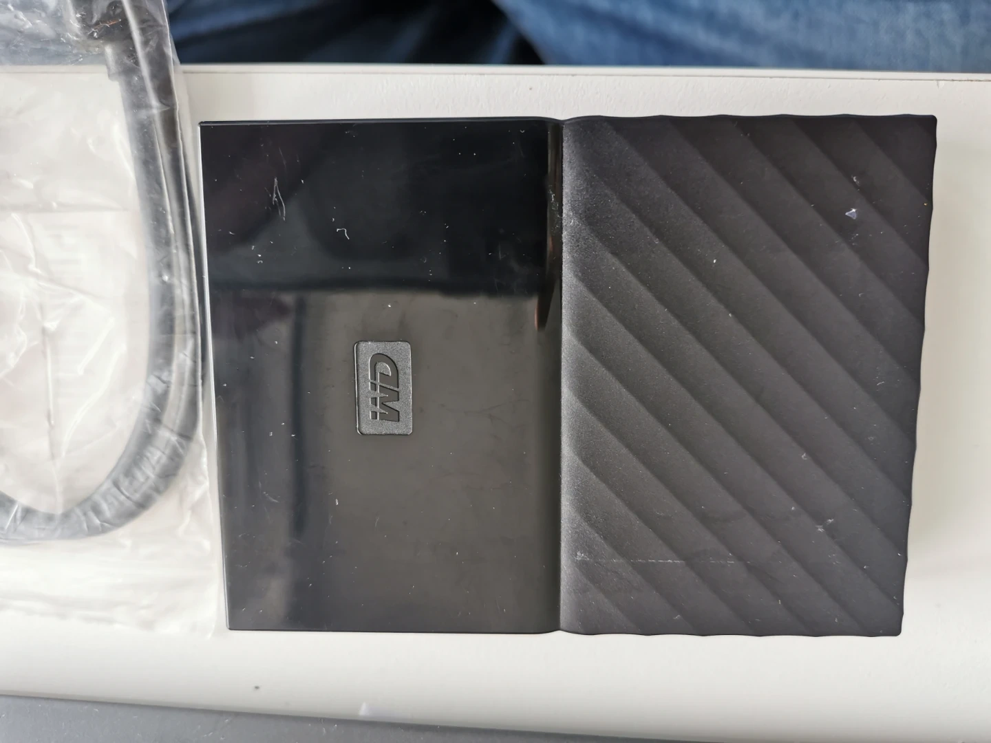 This is a WD My Passport external hard drive. It's in excellent condition with 100% performance and health. It has been powered on for 5 days and 12 hours, with an estimated remaining lifetime of more than 1000 days. Includes the original USB cable.