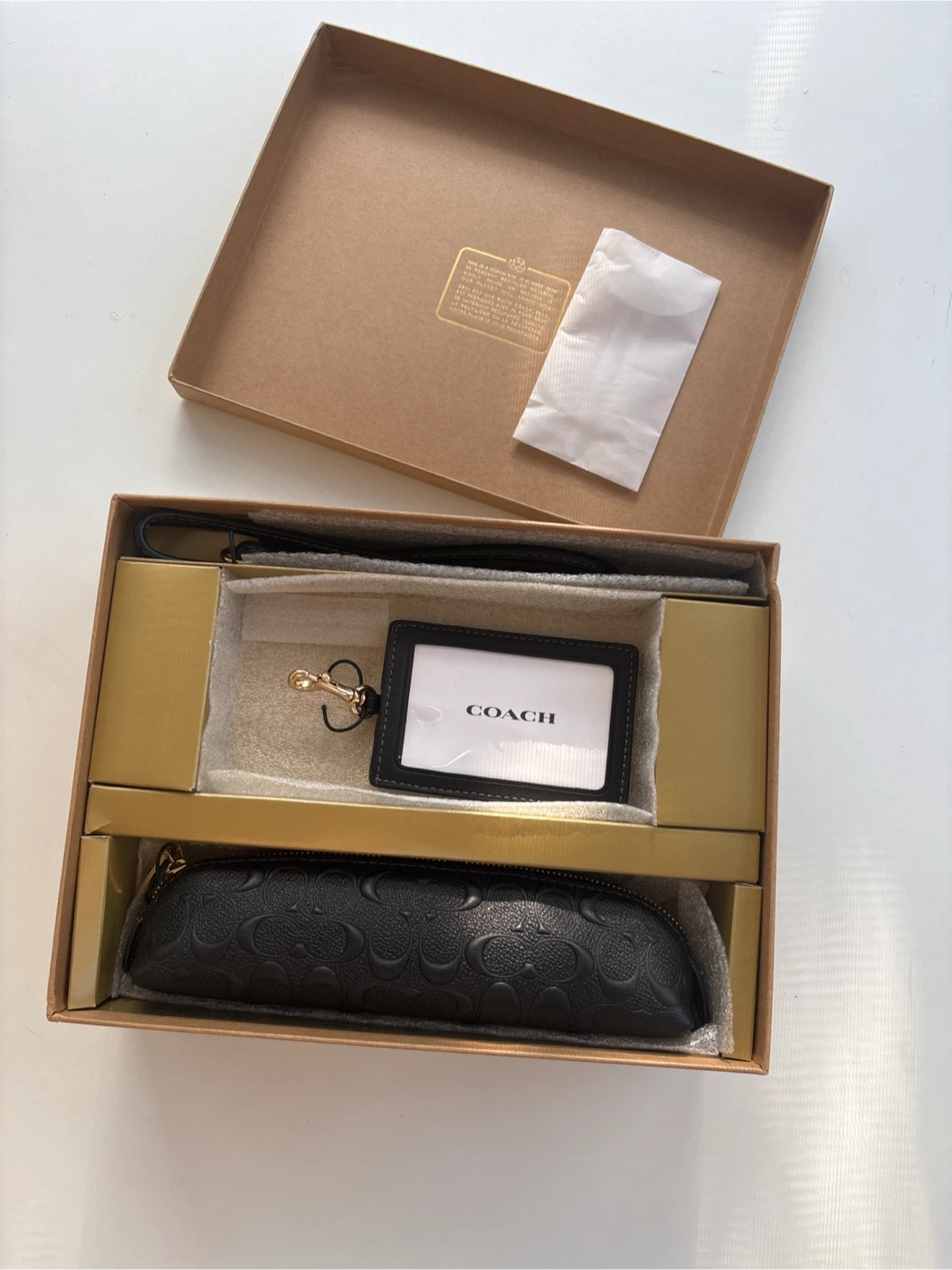 Selling a brand new Coach travel set! It comes in its original box and includes a black wristlet, a luggage tag, and a small pouch, all featuring the Coach logo. Perfect for your next trip!