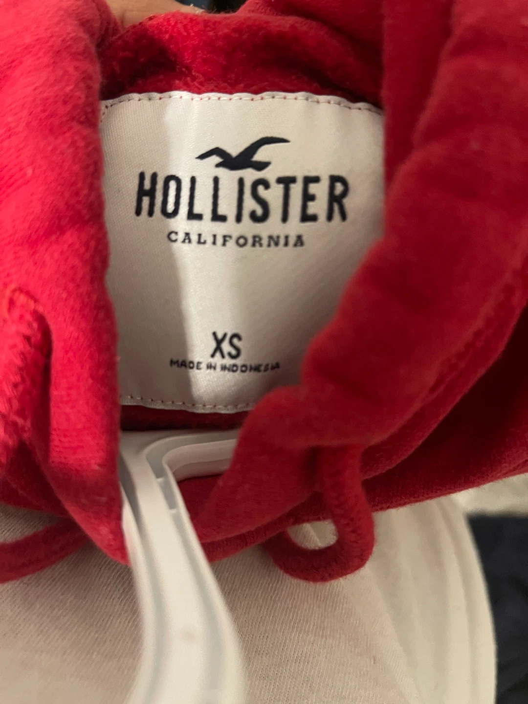 Selling a red Hollister California hoodie in size XS. It's in great condition and ready for a new owner! Perfect for layering or just staying cozy.