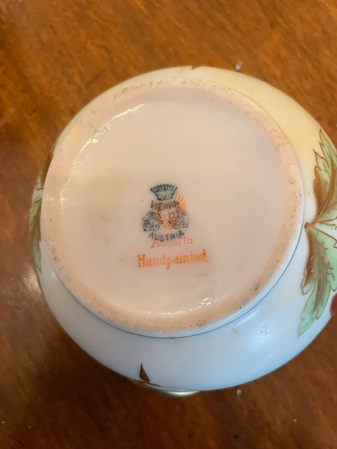 Handpainted Austrian Porcelain Sugar Bowl with Poppies