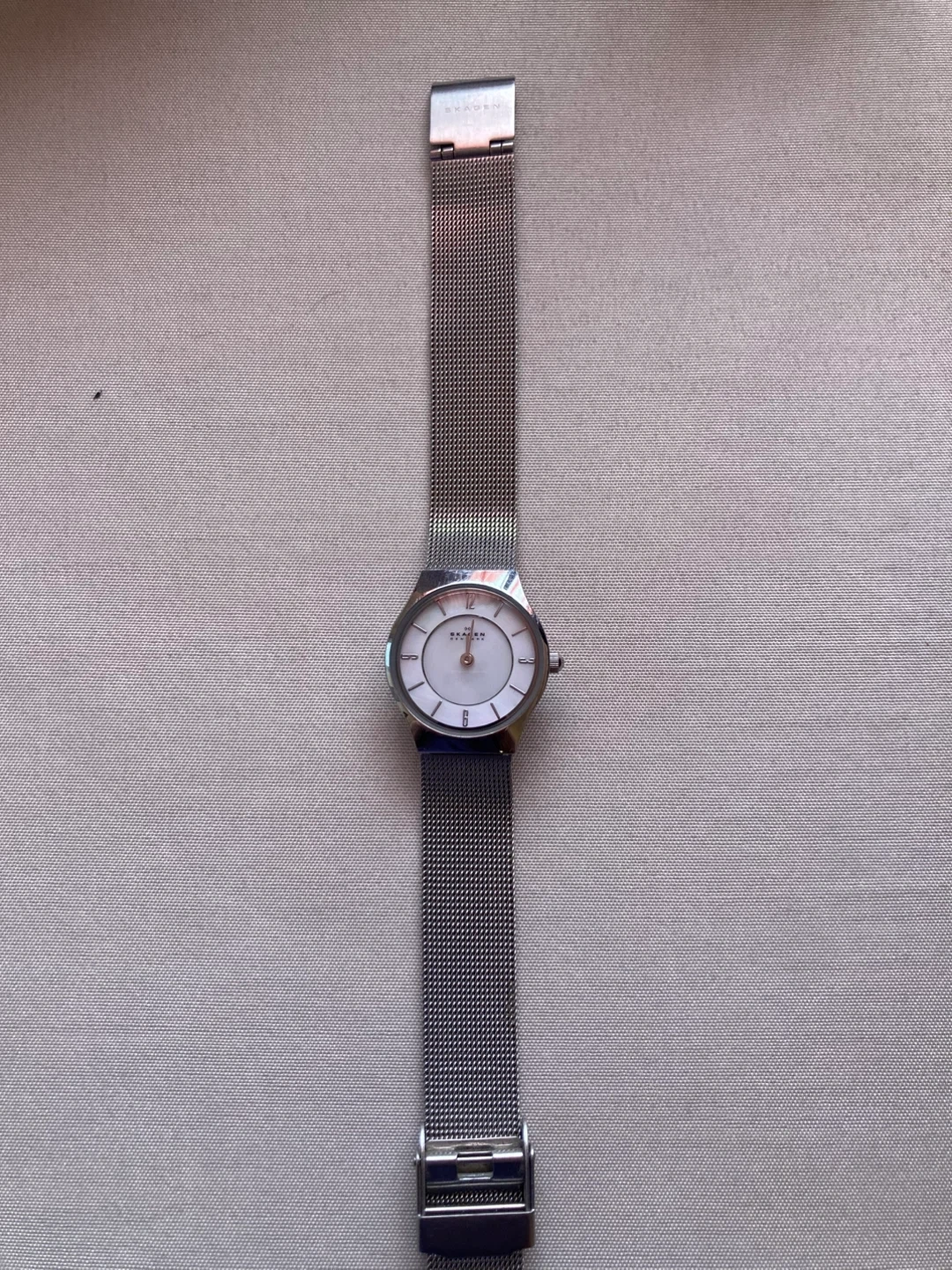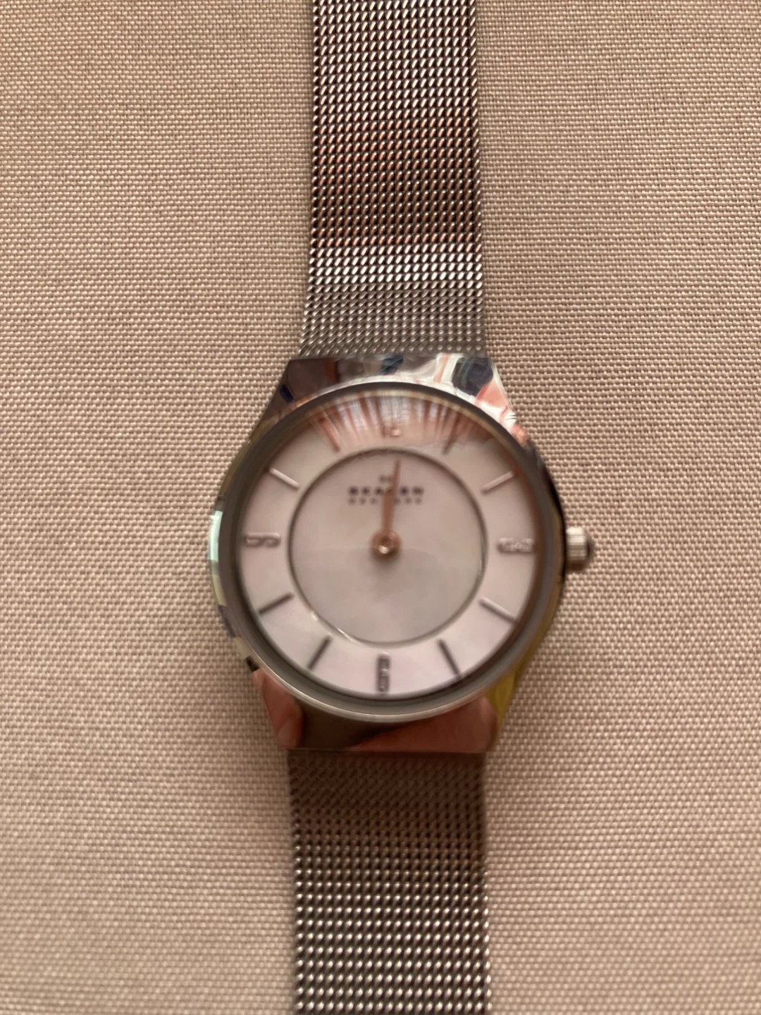 Buy & SellSkagen Watch w/ Mother of Pearl FaceSkagen Watch w/ Mother of Pearl Face$45Like new, but needs a batteryConditionLike newBrandSkagenWHERE TO MEETSpadina StationView MapSELLERMarisaBloor Annex17817 reviews0 chats·0 favorites·33 viewsSEND CHAT TO SELLERHi Marisa! I’m interested in your listing.Hi Marisa! I’m interested in your listing.Get the Karrot app to chatSign In to chat