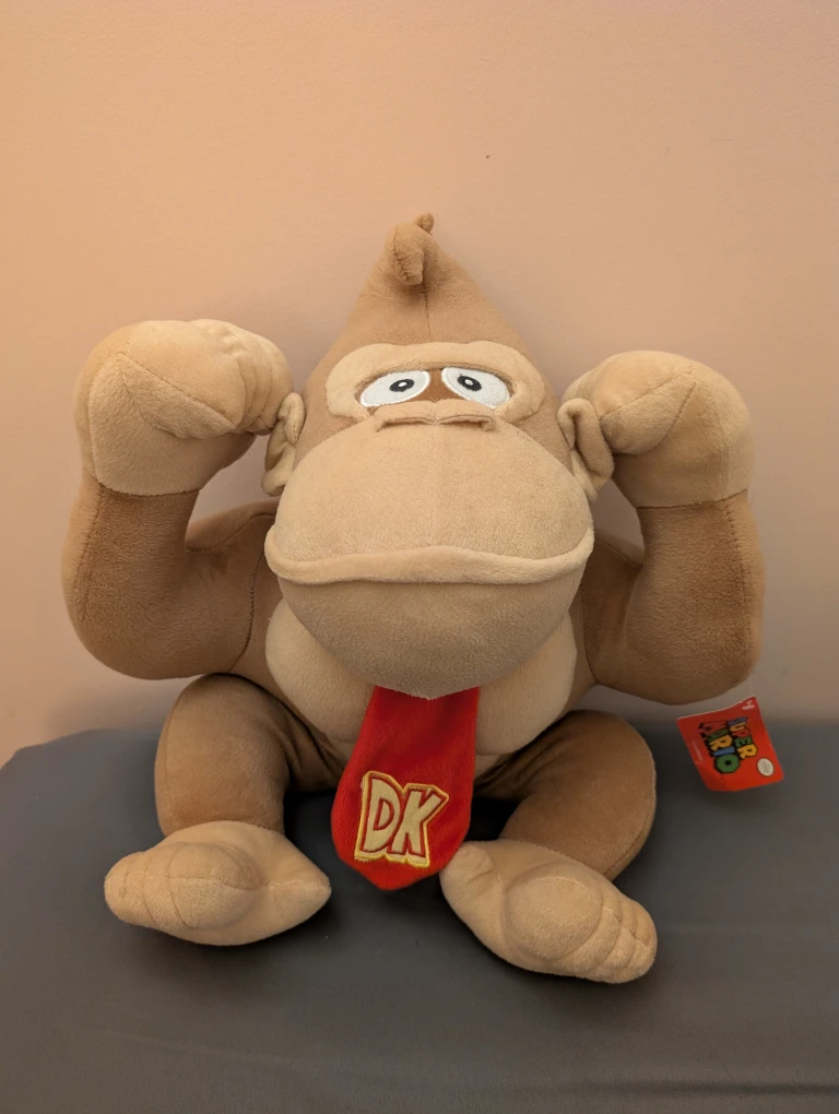 Selling a Donkey Kong plush toy! This cuddly friend is about 17 inches tall, perfect for any Nintendo fan or collector. It's in great condition and ready for a new home!