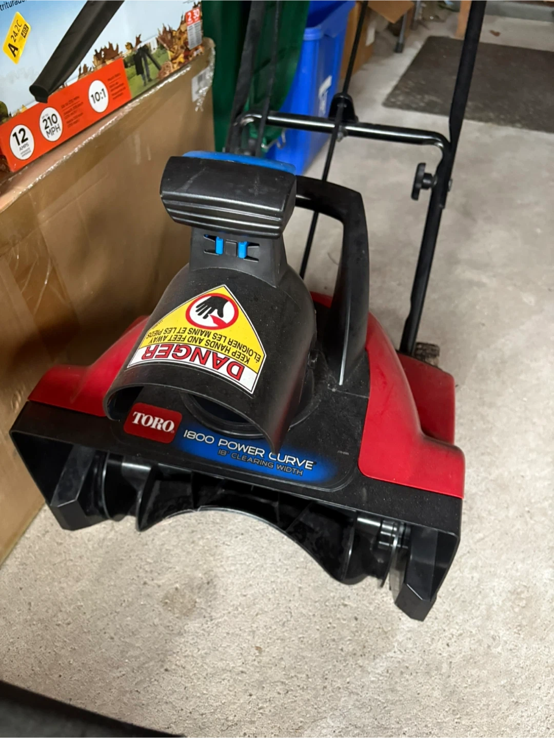 Selling a Toro 1800 Power Curve electric snowblower. It's in like-new condition and ready to clear your driveway this winter!