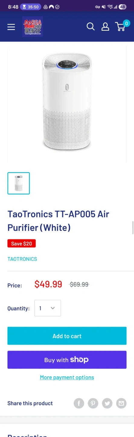 This TaoTronics TT-AP005 air purifier is white. It features a HEPA filter and adjustable fan speeds. It's great for improving indoor air quality. Ignore the auto filter warning--I put in a new filter. I have a new gifted air purifier and making space in my storage. Would like gone soon, can lower price to $15 if bought this week.