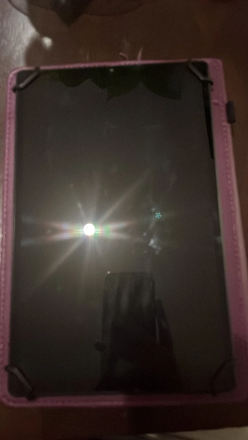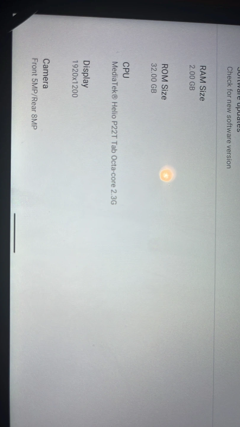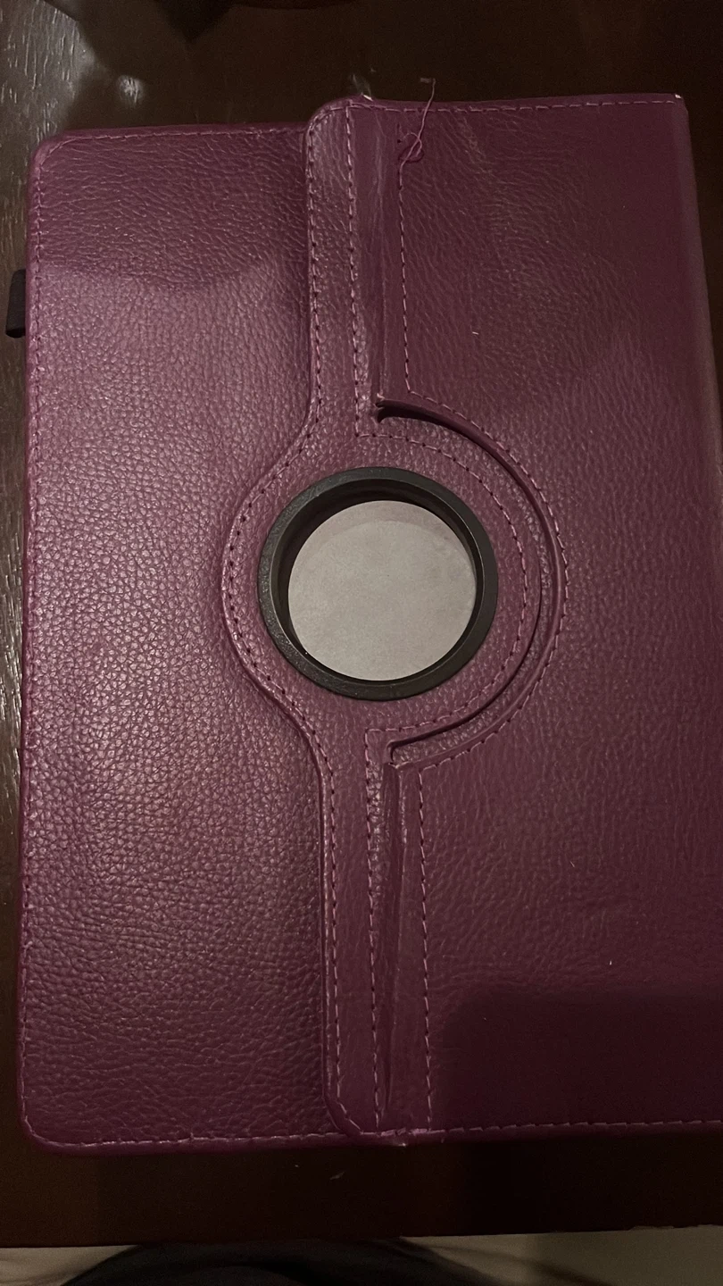 This Lenovo tablet has a 10-inch display with 32GB of ROM and 2GB of RAM. It runs on Android version 10 and features a MediaTek Helio P22T Octa-core 2.3GHz CPU. The camera is 8MP rear and 5MP front. It's housed in a purple case.