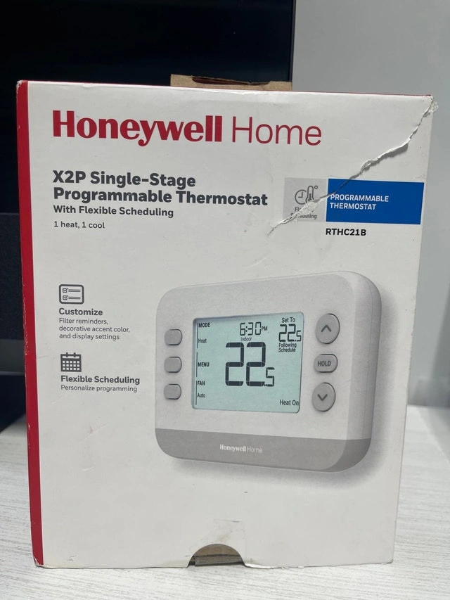 Brand new with box. Model: RTHC21B. Seller Price: $55. Pickup location: Islington and Rexdale, Etobicoke. Please call or message us at 416-722-2955. Cash only. The Honeywell Home X2P programmable thermostat is optimized for single-stage 1 heat/1 cool systems. The 5-2 day programming technology allows for customized programming to fit your lifestyle; there's even a non-programmable option. This is a quality thermostat for your home that can be customized to receive filter change reminders and select display settings.