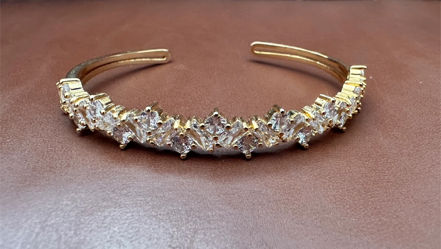 Gold Tone CZ Crystal Bangle Bracelet