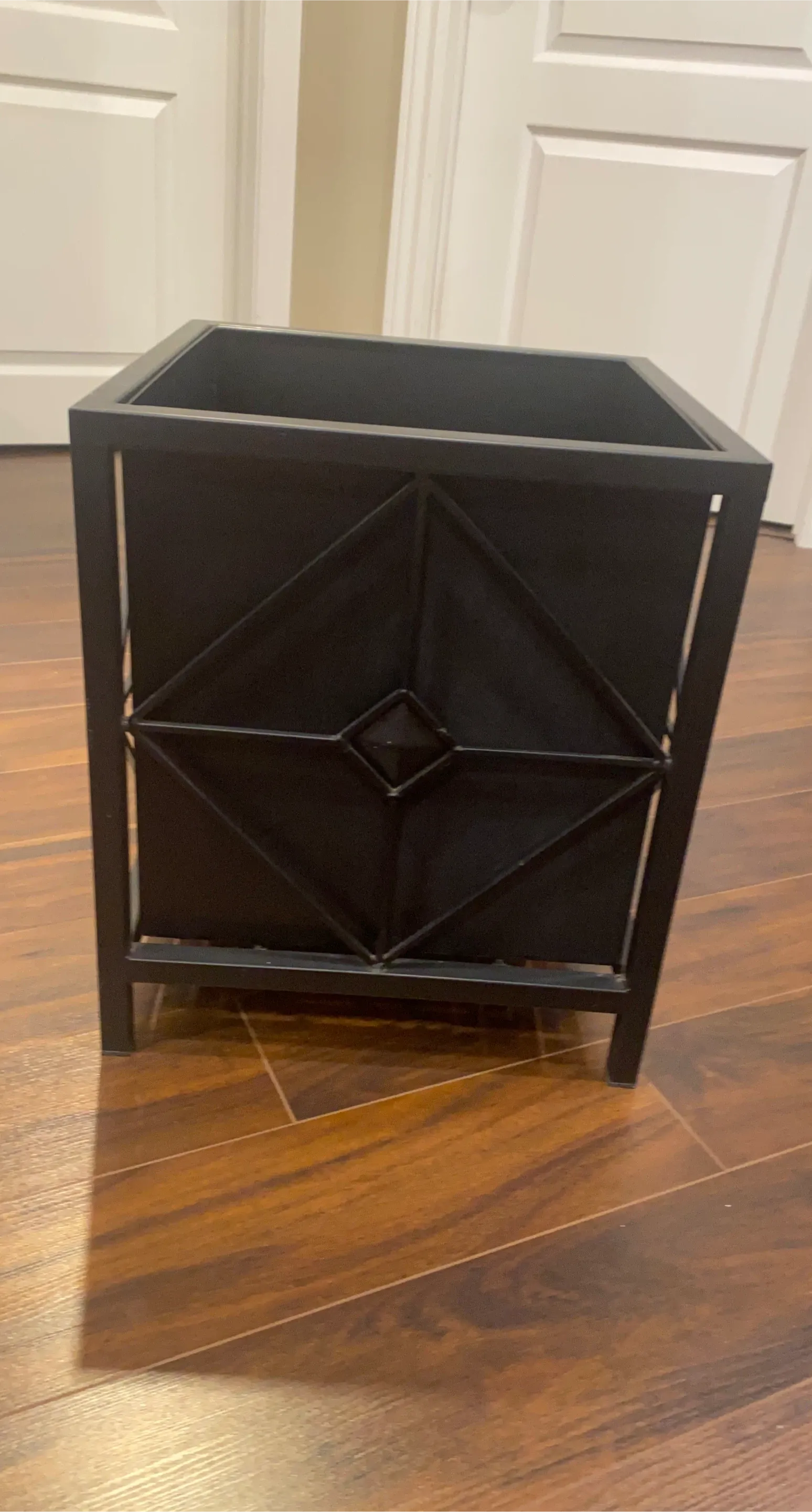 Stylish black metal planter box with geometric detailing. It's perfect for housing your favourite plants indoors or outdoors. The sturdy metal construction ensures durability and a modern look.
