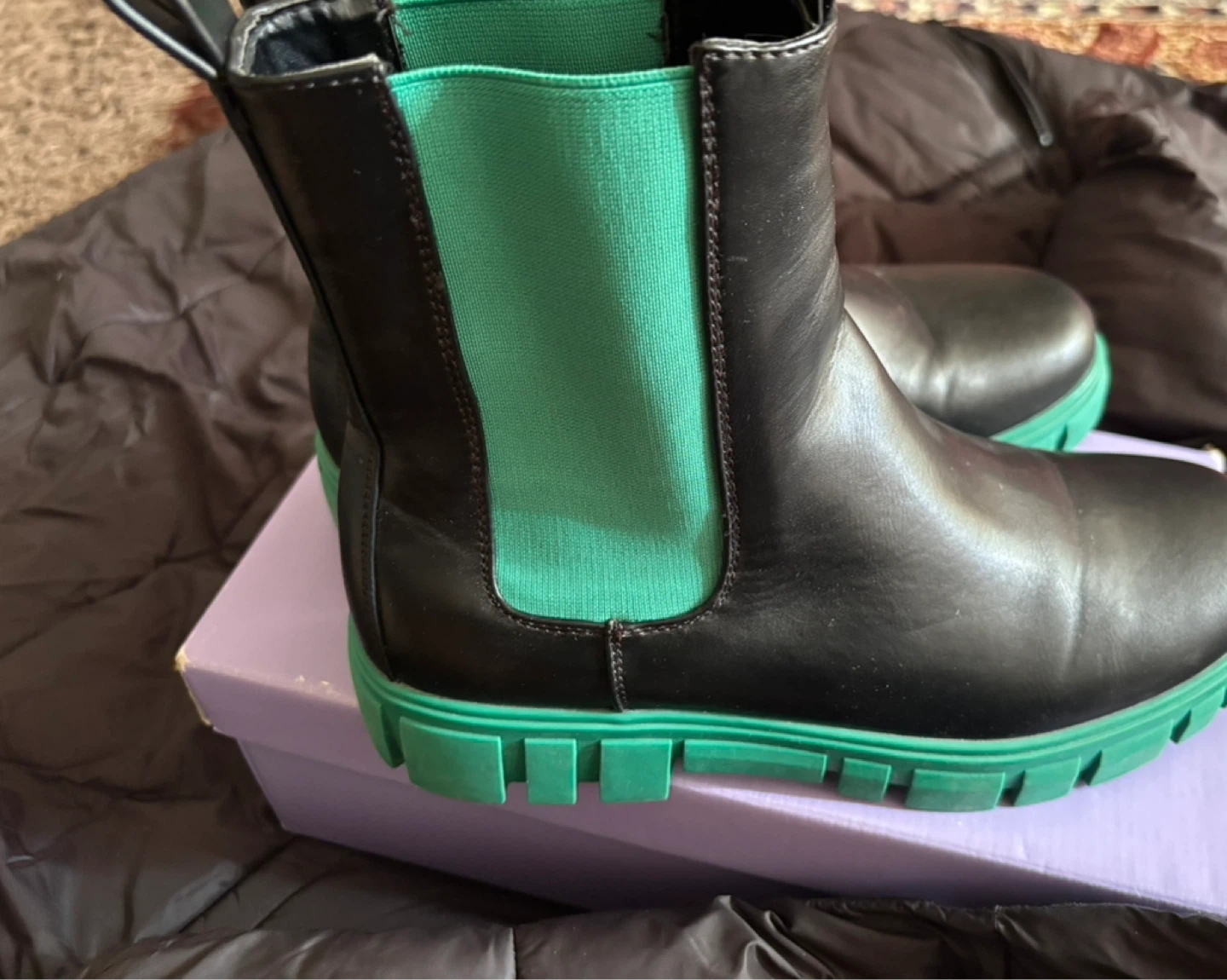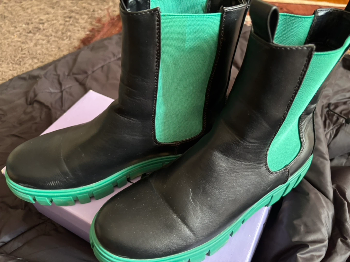 1 / 41 / 4Buy & SellVero Moda Black Chelsea Boots with Green Sole - EUR 40Vero Moda Black Chelsea Boots with Green Sole - EUR 40$35Black Chelsea boots with a vibrant green sole and elastic side panels. Made in China. EUR size 40.ConditionLike newBrandVero ModaWHERE TO MEETCheck LocationView MapSELLERverifiedAshWishing Well Acres43736 reviews0 chats·0 favorites·10 viewsSEND CHAT TO SELLERHi Ash! I’m interested in your listing.Hi Ash! I’m interested in your listing.Get the Karrot app to chatSign In to chat