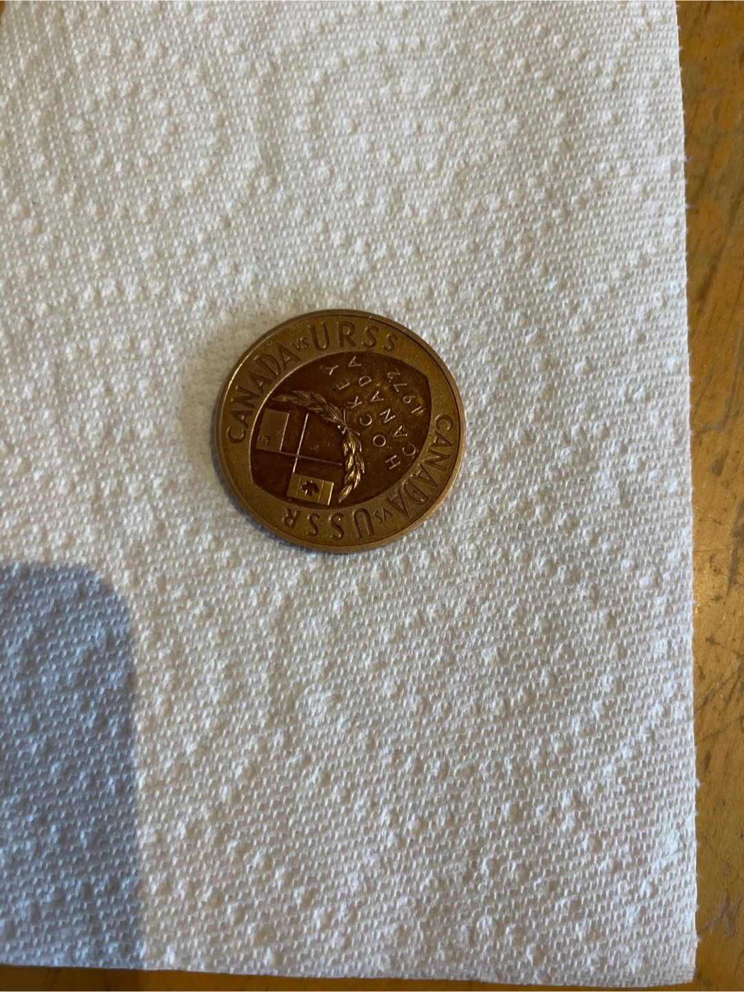 Commemorative coin from the 1972 Canada-USSR Hockey Summit Series. It's a unique piece of Canadian sports history. This coin marks a significant event in international hockey. It's a great collectible for hockey fans!