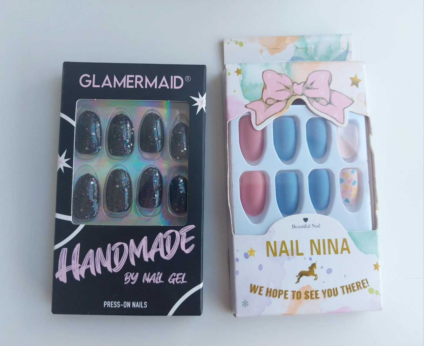 Two different styles of press-on nails These are great for a quick manicure!