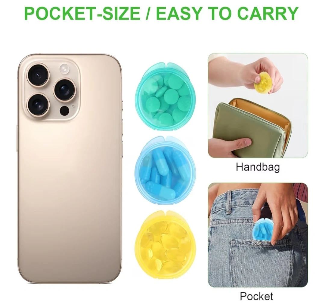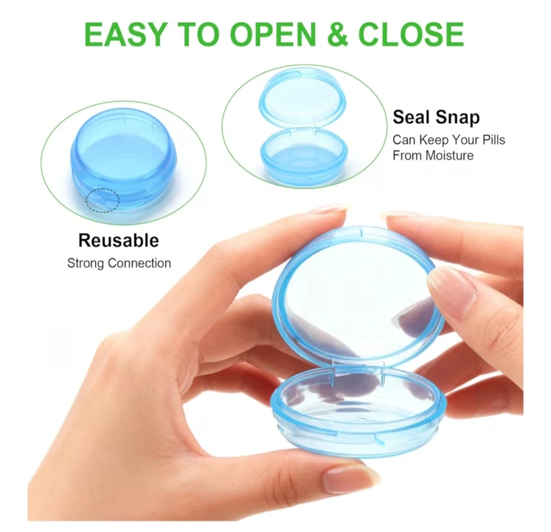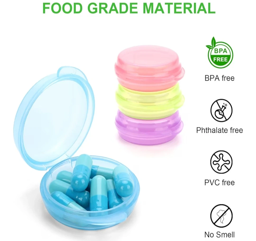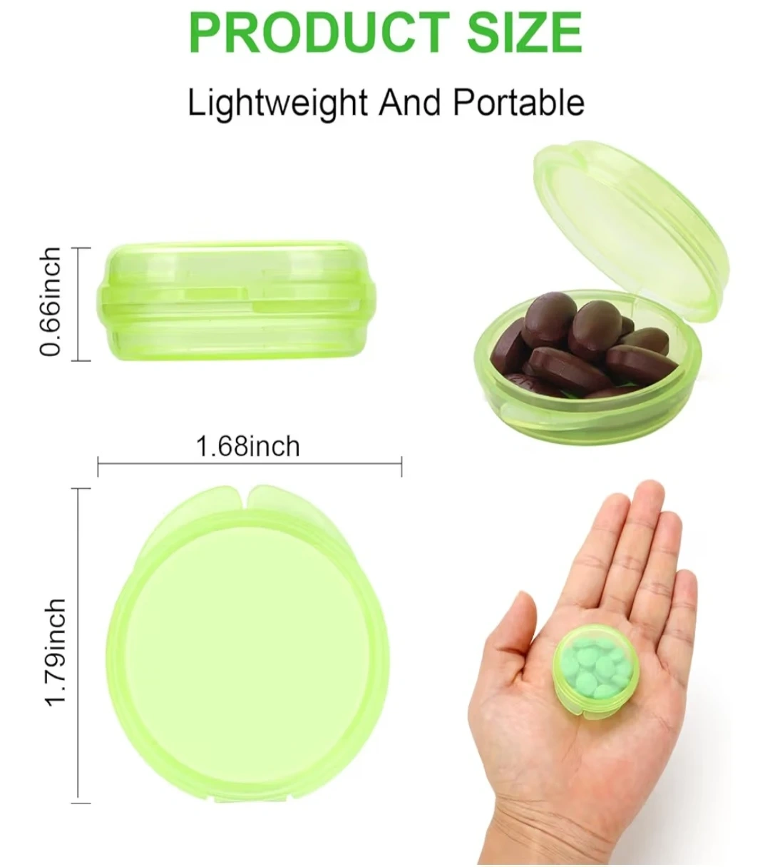 Small Pill Case,8 Pack Travel Round Pill Boxes,Portable Mini Daily Pill Organizer Container,Tiny Medicine Storage for Pocket Purse,Clear Compact Caddy Dispenser for Vitamin, Cod, Liver Oil - Colored