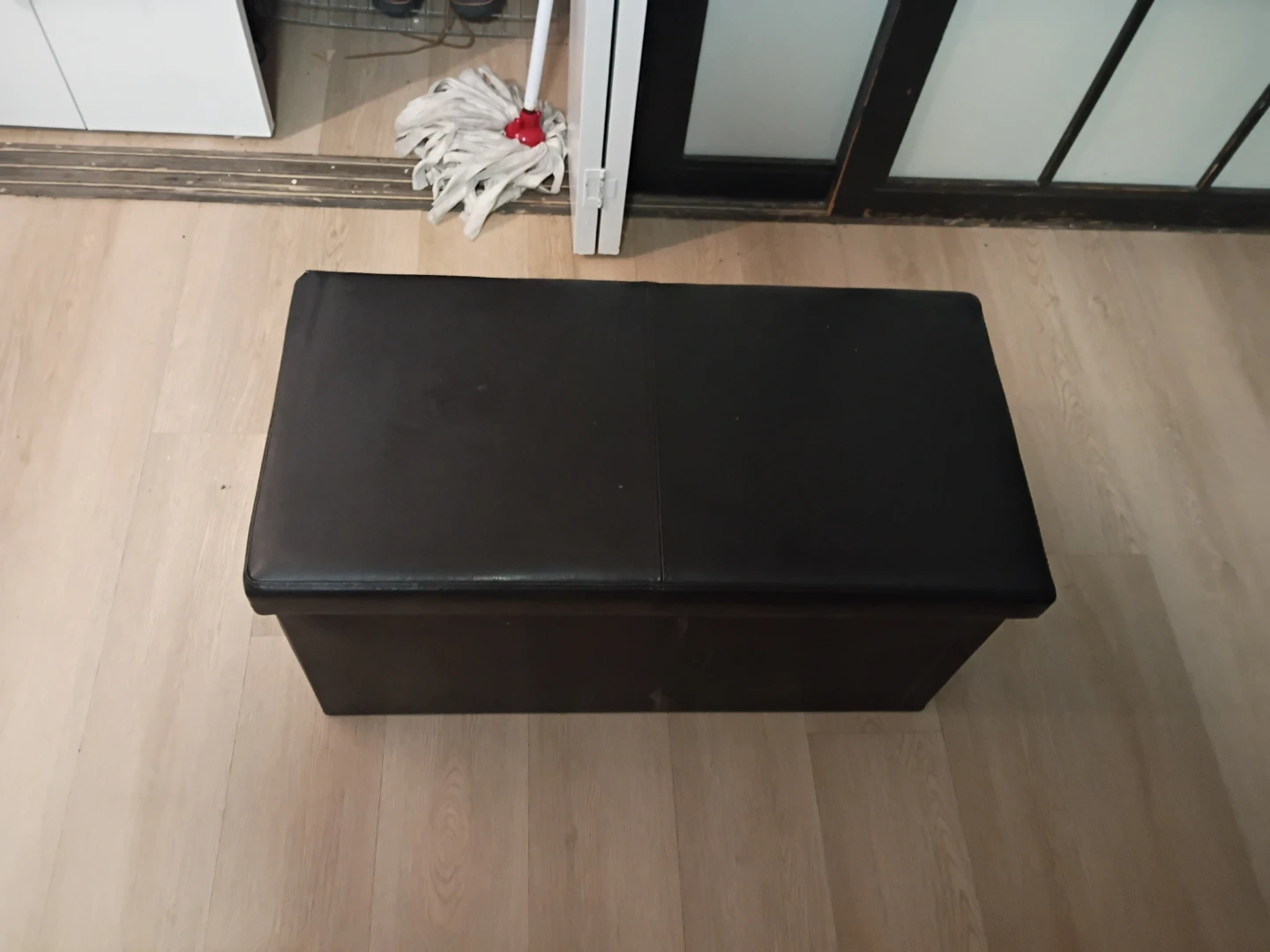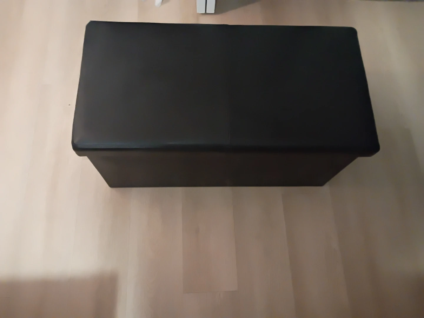This storage ottoman bench is made of faux leather. It's perfect for stowing away extra blankets or pillows. It has a hinged lid for easy access. Great for adding extra seating or storage in a living room or bedroom!