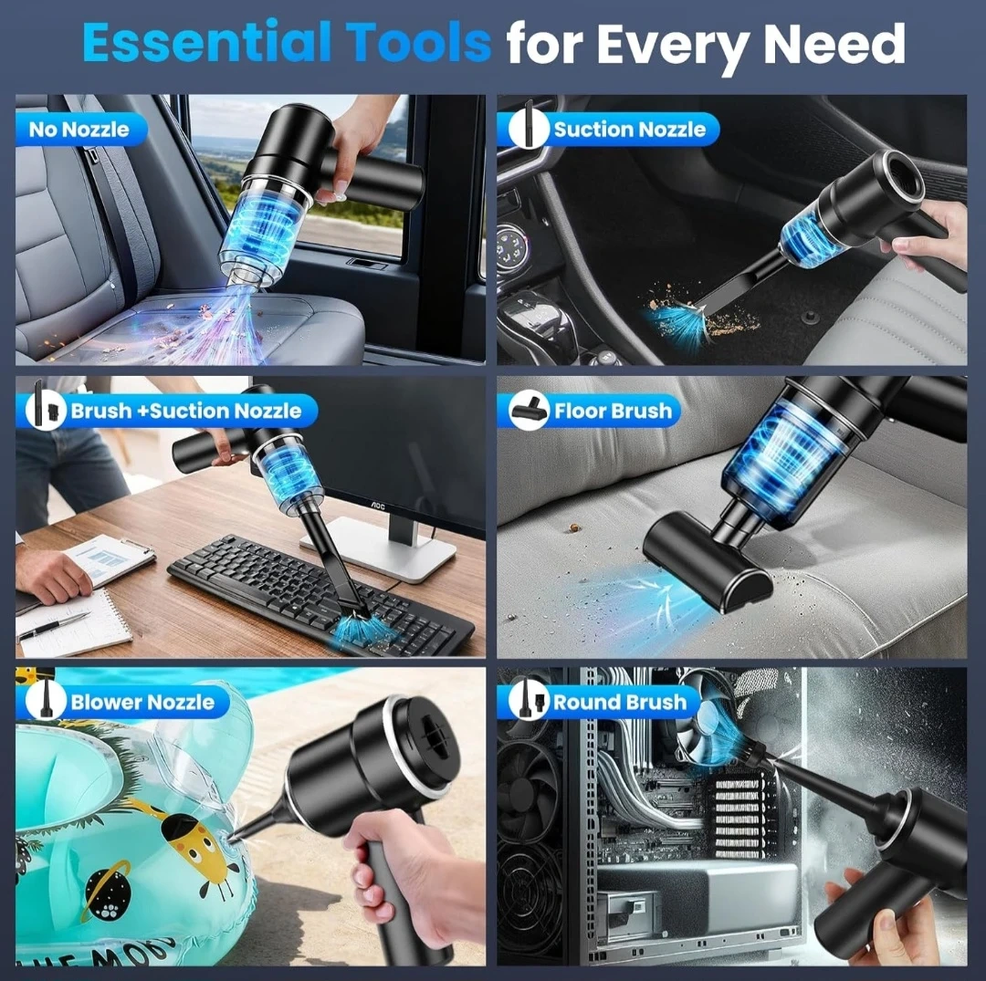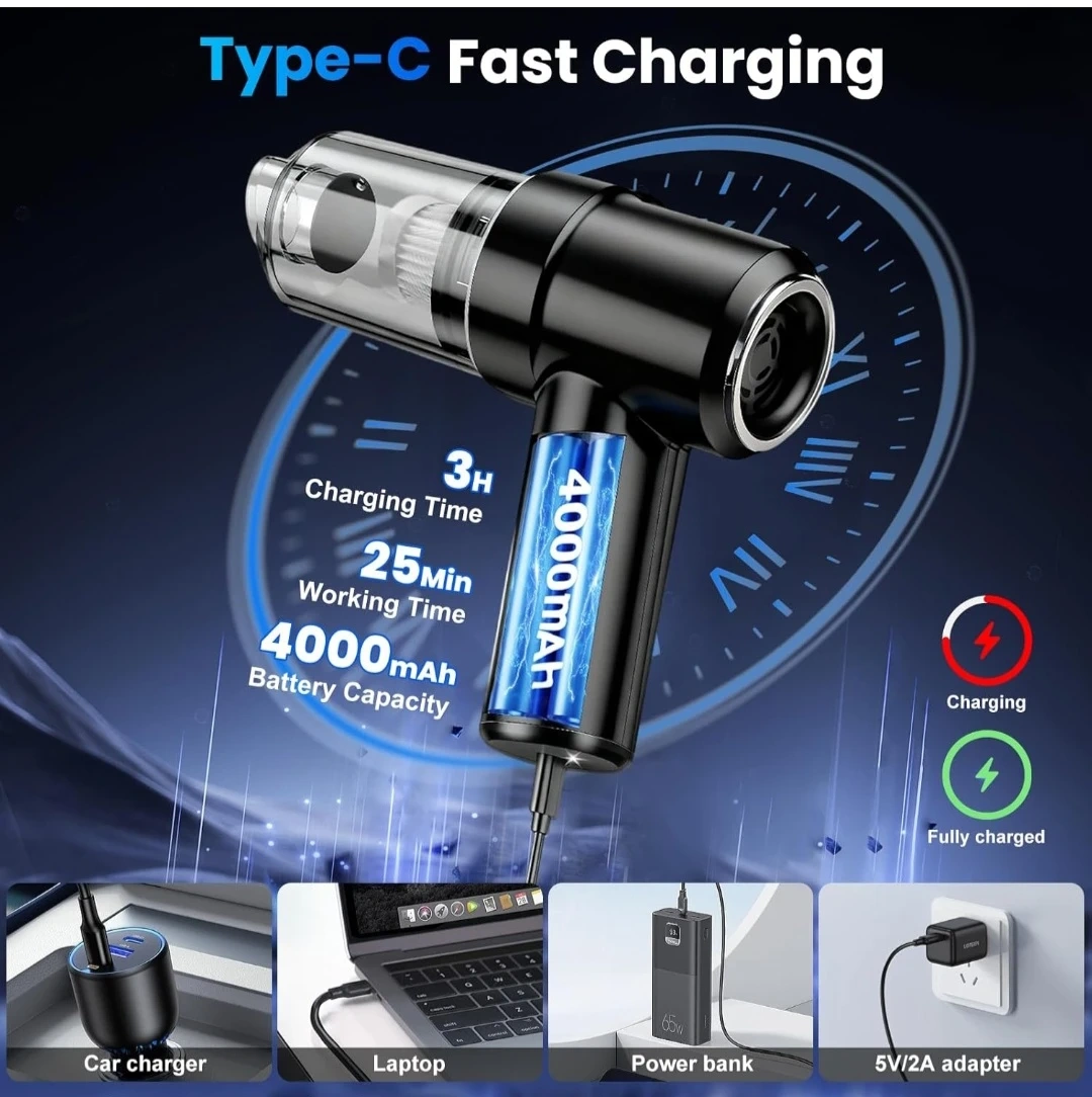 Handheld Car Vacuum Cleaner, 12000Pa Portable Handheld Vacuum Blow & Suction,120W High Power Hand Held Vacuum with LED Light and Multi-Nozzles for Car, Home, Office, Keyboard, Pet Hair