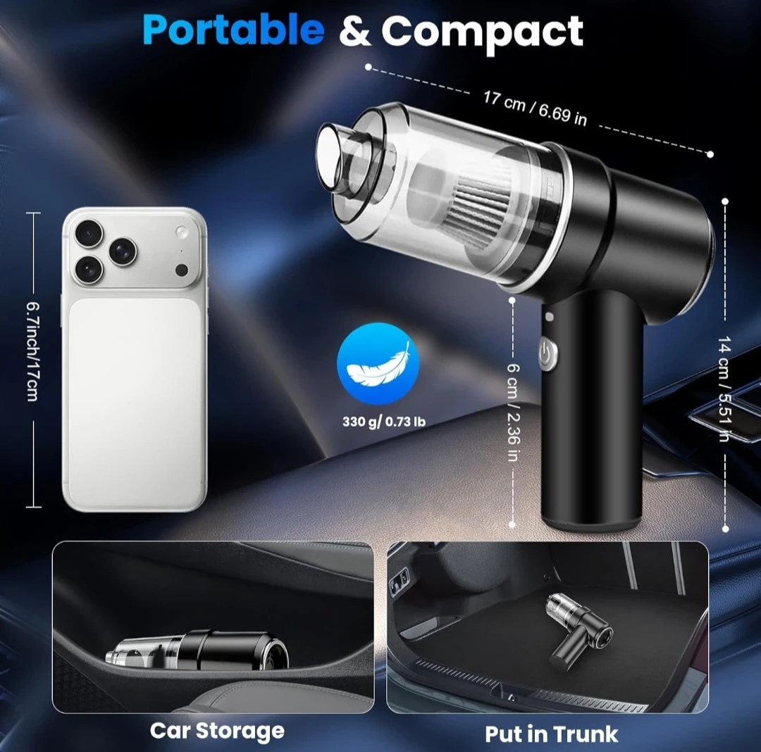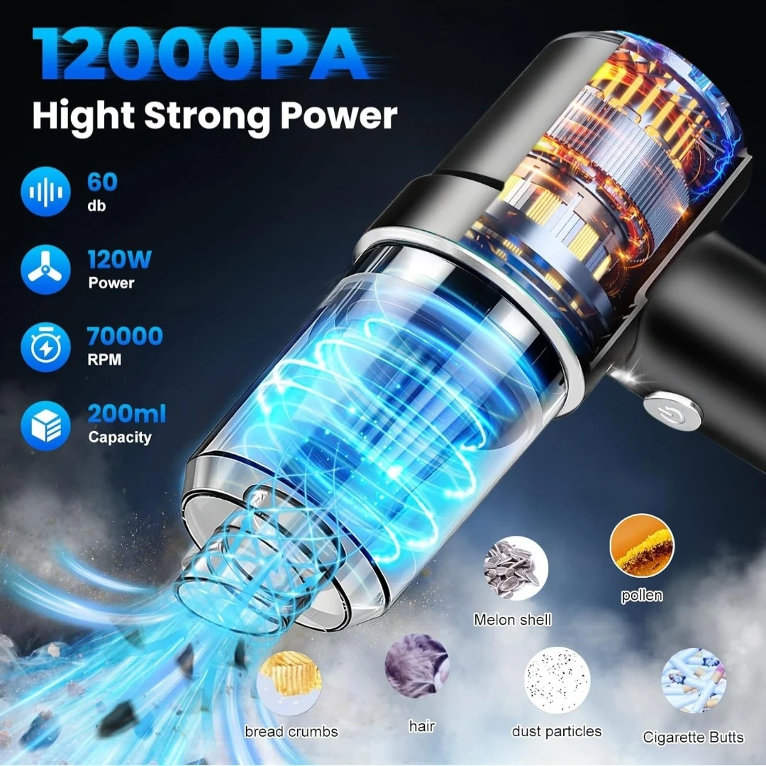 Handheld Car Vacuum Cleaner, 12000Pa Portable Handheld Vacuum Blow & Suction,120W High Power Hand Held Vacuum with LED Light and Multi-Nozzles for Car, Home, Office, Keyboard, Pet Hair