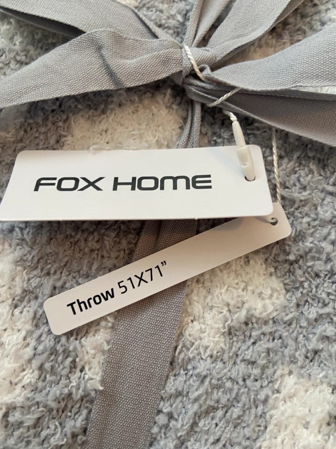 This is a FOX HOME throw blanket. It's a soft, fluffy throw measuring 51 by 71 inches. Perfect for staying cozy on the couch!