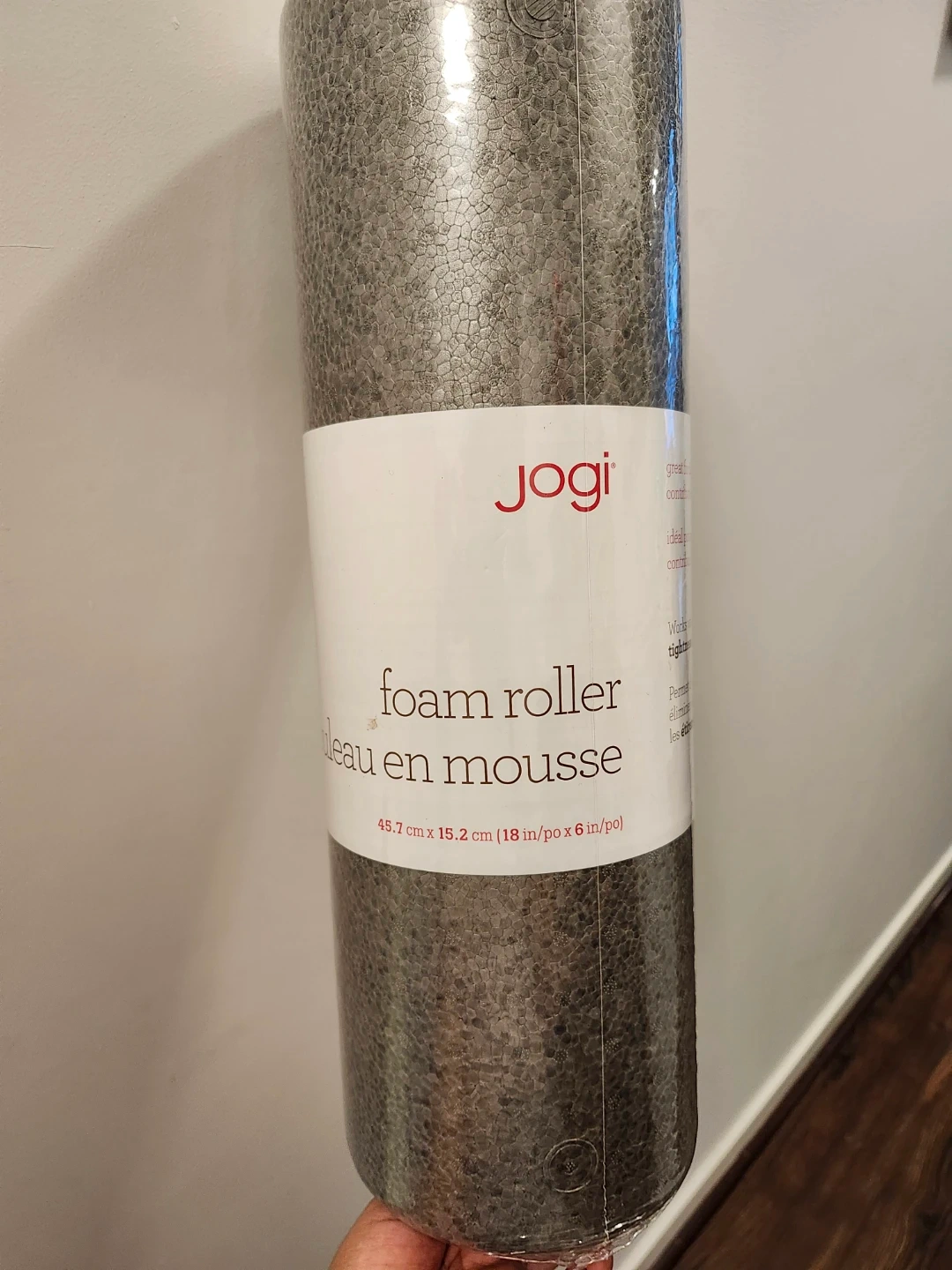 Selling a Jogi foam roller! It measures 45.7 cm x 15.2 cm (18 in/po x 6 in/po). Great for working out those tight muscles!